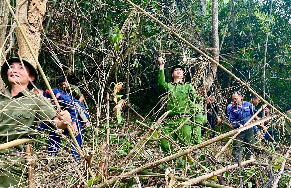 Lực lượng Công an chủ động tham gia phát dọn thực bì, tạo đường ranh cản lửa, phòng chống cháy rừng.