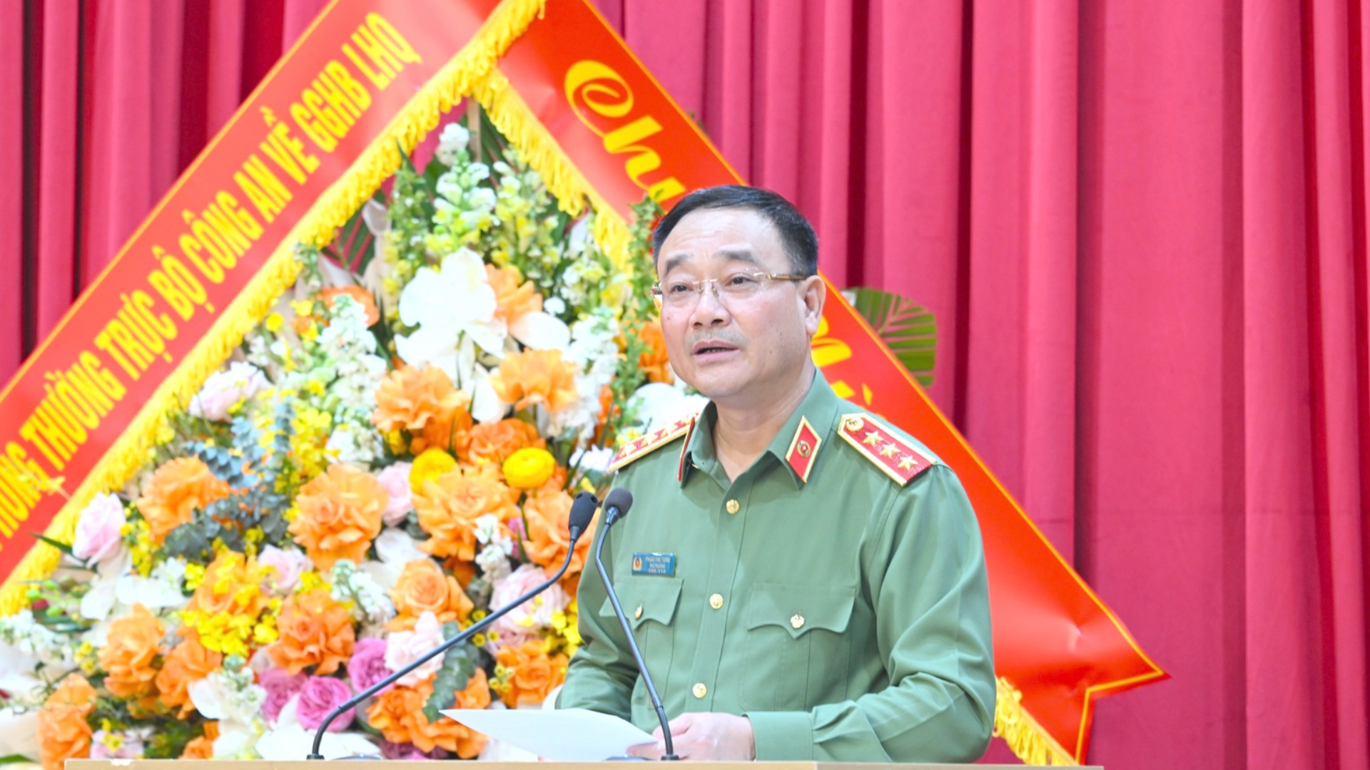 Thượng tướng Phạm Thế Tùng, Ủy viên Trung ương Đảng, Thứ trưởng Bộ Công an, phát biểu chỉ đạo tại buổi lễ.
