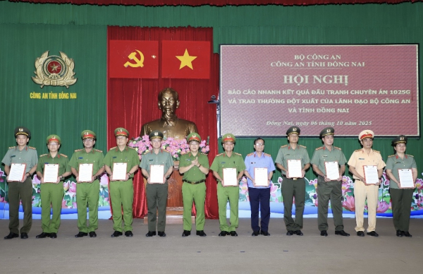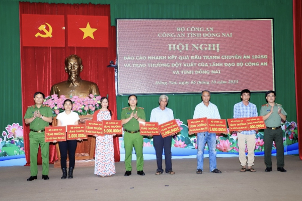 Cũng tại buổi lễ, UBND tỉnh Đồng Nai đã quyết định trao thưởng 500 triệu đồng cho Công an tỉnh Đồng Nai và các đơn vị tham gia phá án, thể hiện sự quan tâm, động viên kịp thời của lãnh đạo UBND tỉnh trước chiến công của Công an tỉnh Đồng Nai.