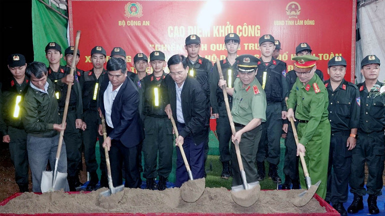 Đồng chí đánh giá cao tinh thần chủ động của Công an tỉnh Lâm Đồng trong khảo sát, chuẩn bị mặt bằng, huy động lực lượng và phối hợp chính quyền để triển khai chiến dịch theo phương châm “khẩn trương, hiệu quả”. Ba căn nhà được khởi công tại xã Quảng Lập là dấu mốc khởi đầu của chiến dịch, thể hiện sự đồng hành của lực lượng Công an nhân dân với nhân dân ở vùng bị thiên tai.