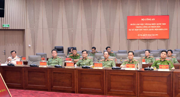 Chiều 6/4, sau ngày làm việc đầu tiên của Kỳ họp thứ Nhất, Quốc hội khóa XVI, Bộ Công an đã gặp mặt các đại biểu Quốc hội (ĐBQH) thuộc khối CAND nhằm trao đổi, cung cấp thông tin những nội dung trọng tâm liên quan đến công tác bảo đảm an ninh, trật tự, xây dựng lực lượng và xây dựng pháp luật của Bộ.