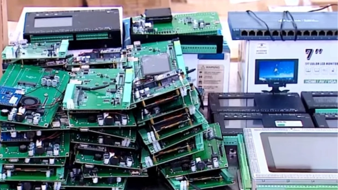 Các thiết bị được sử dụng để can thiệp, làm sai lệch kết quả quan trắc môi trường bị cơ quan chức năng thu giữ. (Ảnh: VTV)