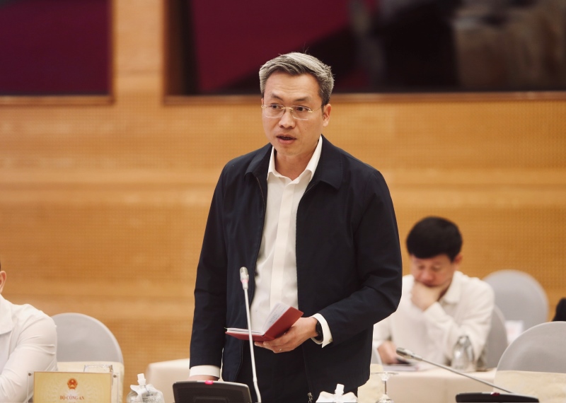 Thiếu tướng Nguyễn Quốc Toản, Chánh văn phòng, người phát ngôn Bộ Công an trả lời tại họp báo. Ảnh: Đức Minh.