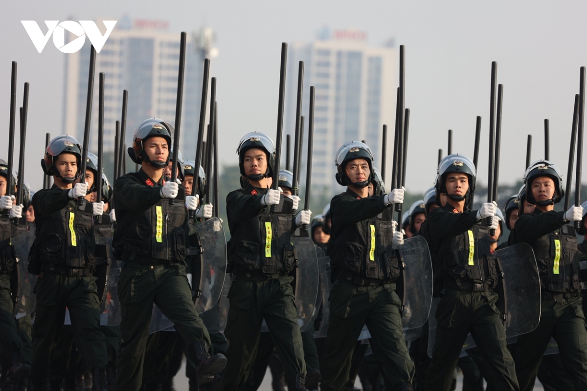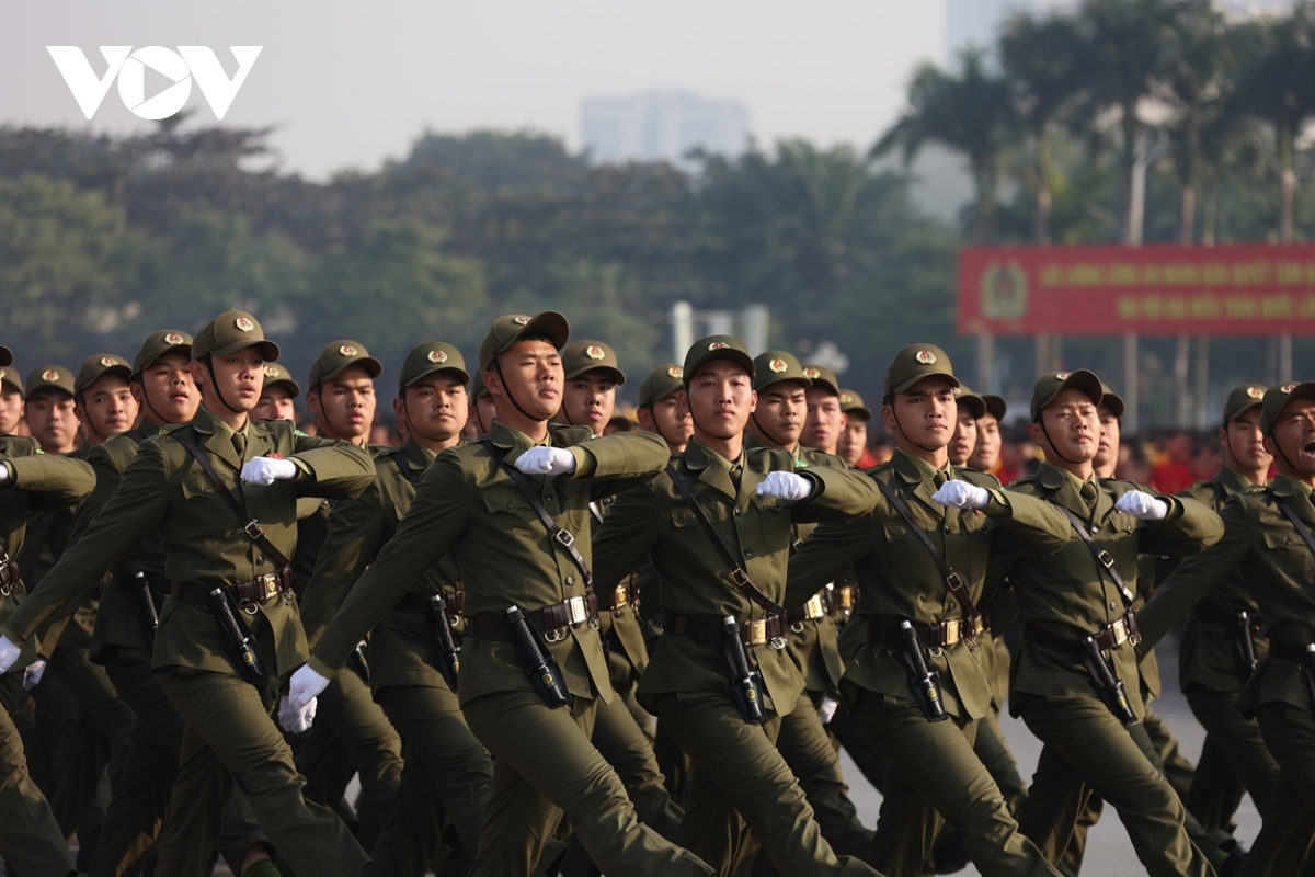 Hơn 1.000 cán bộ, chiến sĩ thuộc các lực lượng của Bộ Công an, Công an TP Hà Nội tham gia duyệt đội ngũ.