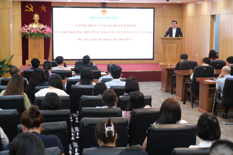 Chiều 6/10, tại trụ sở Bộ Công Thương, diễn ra Lễ Công bố và trao quyết định của Bộ trưởng Bộ Công Thương về công tác cán bộ. Thứ trưởng Trương Thanh Hoài dự và chỉ đạo.