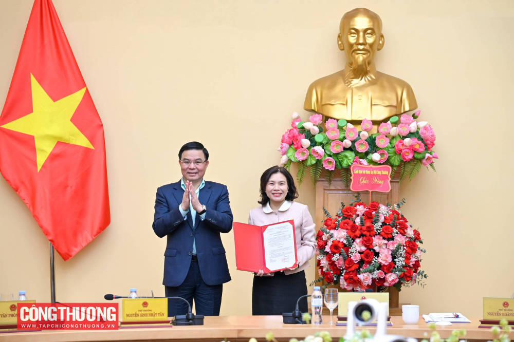 Ủy viên Ban Chấp hành Trung ương Đảng, Bí thư Đảng ủy, Quyền Bộ trưởng Bộ Công Thương Lê Mạnh Hùng trao Quyết định bổ nhiệm cho Tổng Biên tập Tạp chí Công Thương Phạm Thị Lệ Nhung