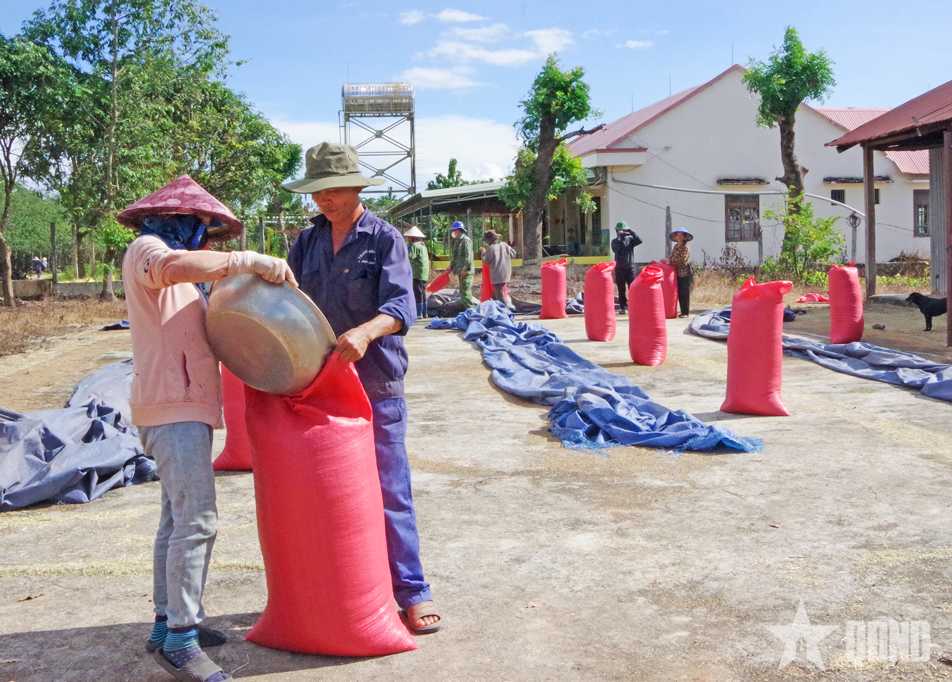 Nhiều hộ gia đình được mùa lúa nhờ Đoàn Kinh tế - Quốc phòng 710 cho mượn đất tái canh cao su và hỗ trợ kỹ thuật, ngày công lao động.