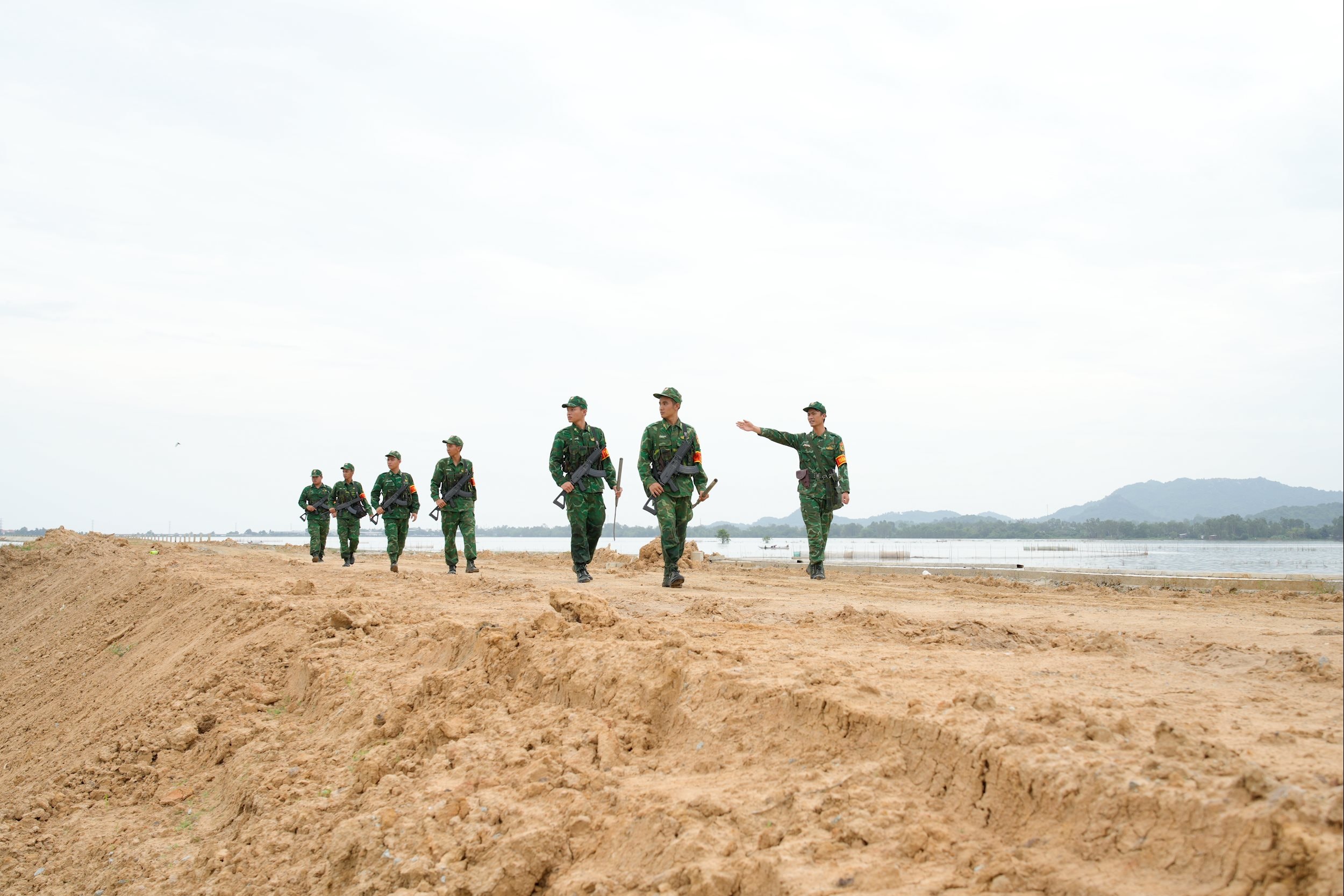 Cán bộ, chiến sĩ đồn Biên phòng cửa khẩu Quốc tế Tịnh Biên tuần tra bảo vệ biên giới. (Ảnh: Tiến Vinh)