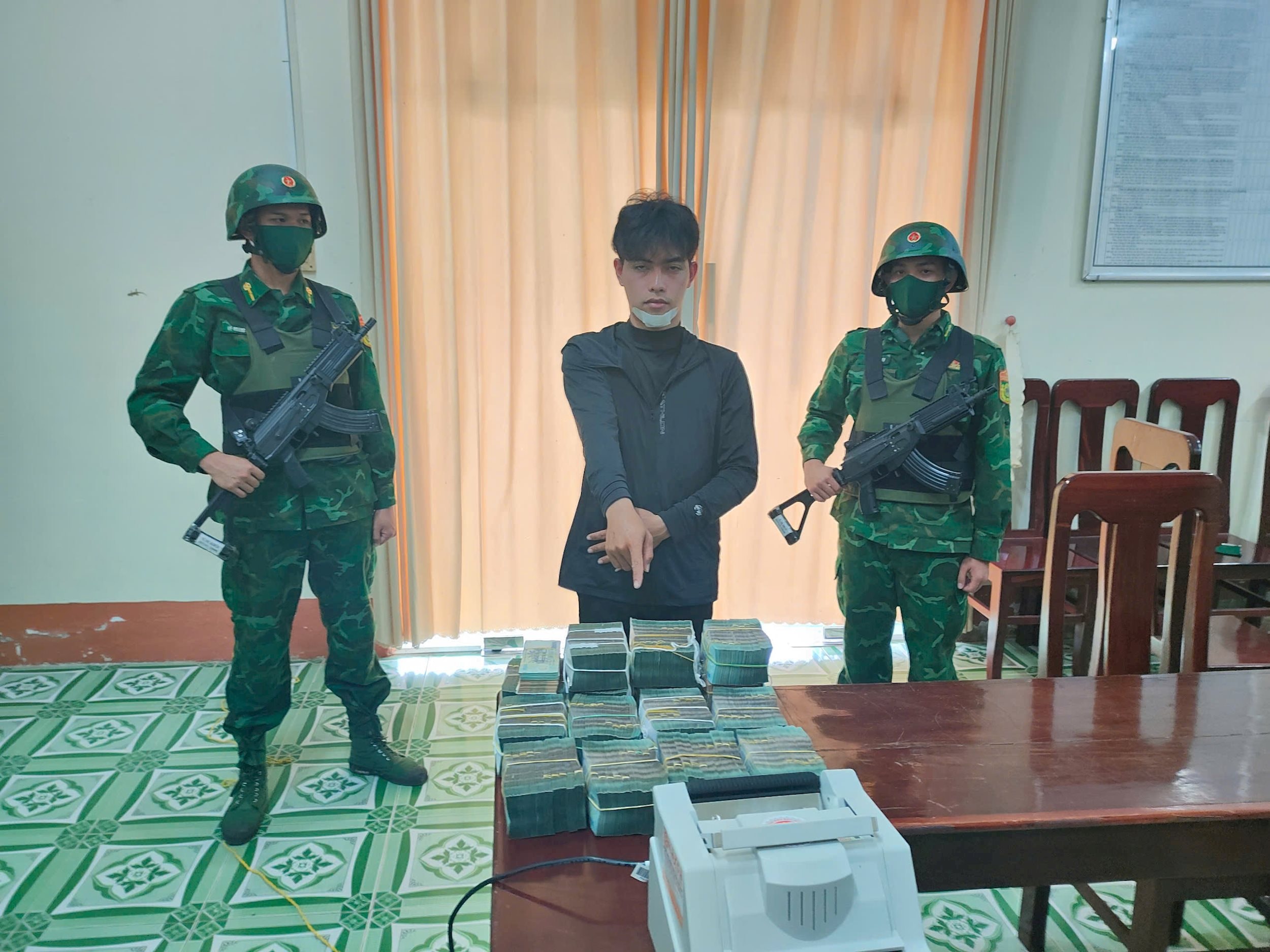 Bộ đội Biên phòng An Giang phối hợp các đơn vị liên quan bắt giữ đối tượng Nguyễn Văn Châu vận chuyển hơn 7 tỷ đồng qua biên giới Campuchia. (Ảnh: Tiến Vinh)