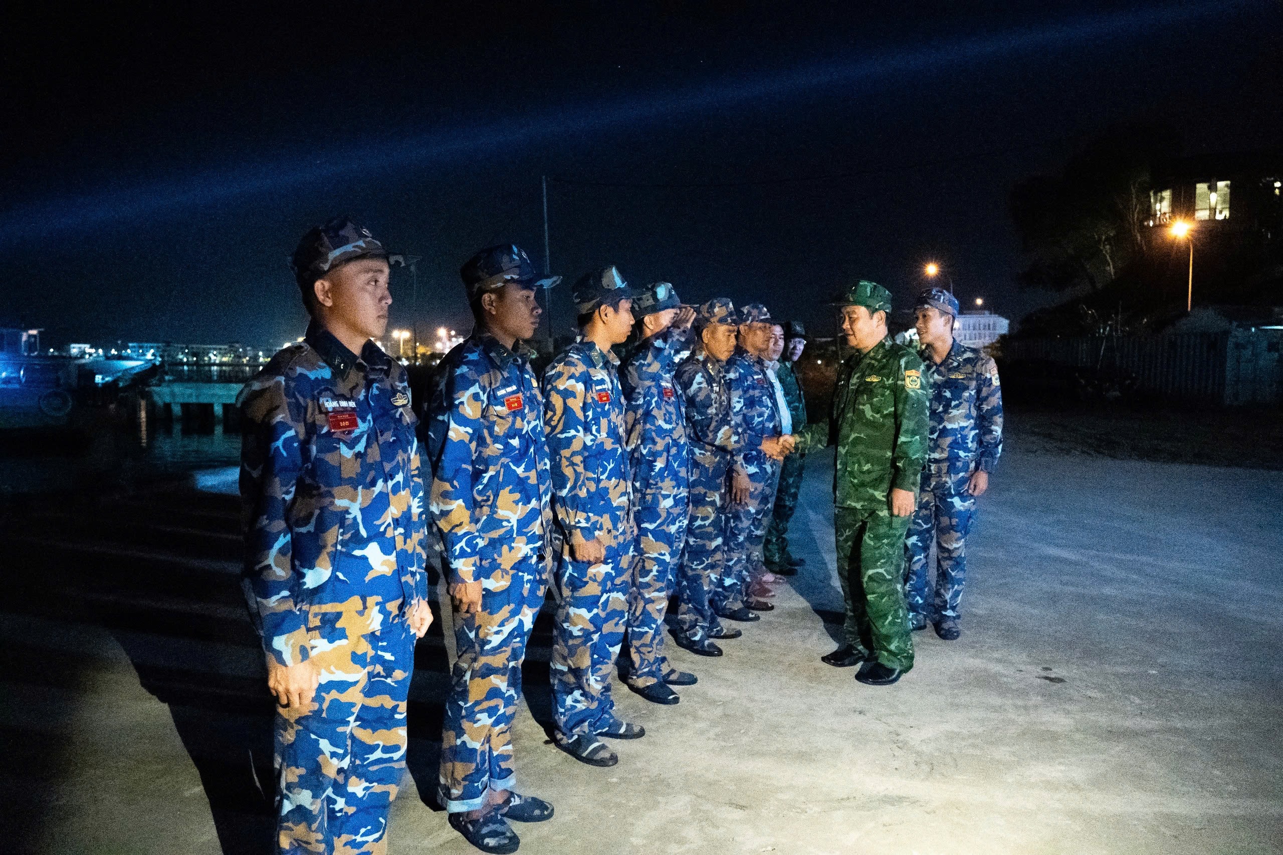 Thượng tá Nguyễn Văn Tùng, phó tham mưu trưởng, được đơn vị giao chuyên trách vấn đề IUU, Ban chỉ huy Bộ đội Biên phòng tỉnh An Giang kiểm tra quân số, khí tài trước lúc xuất phát. (Ảnh: Tiến Vinh)