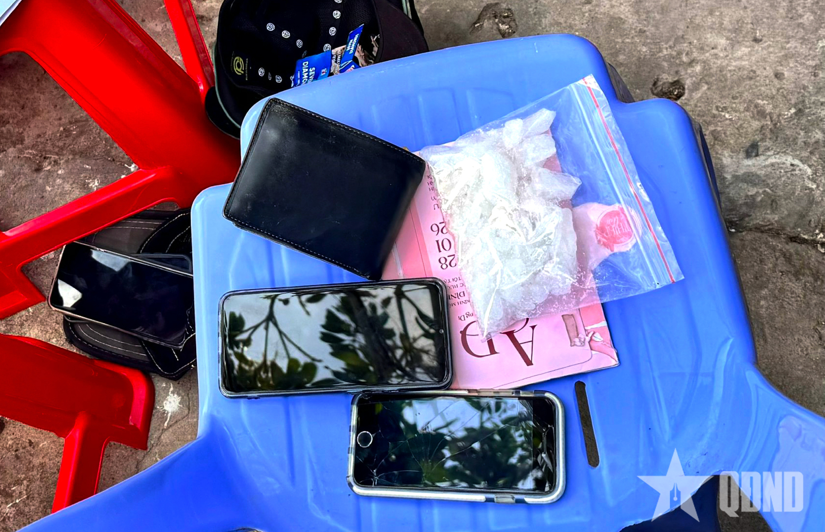Qua kiểm tra, phát hiện trên người của đối tượng Nhí có 1 túi nilong màu trắng, bên trong có chứa các hạt tinh thể màu trắng đục, dạng rắn (nghi là ma túy).