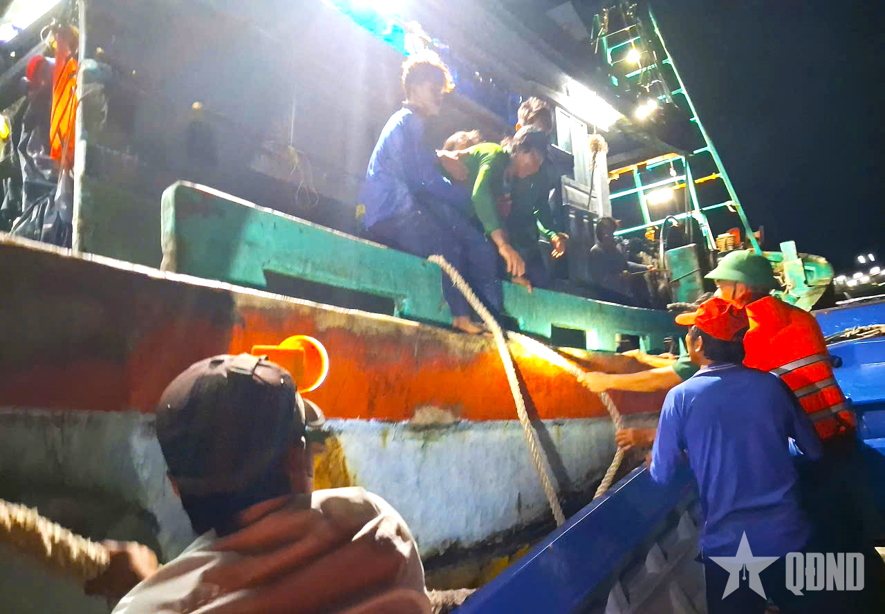 Tổ công tác Đồn Biên phòng Gành Hào đưa thuyền viên vào bờ.