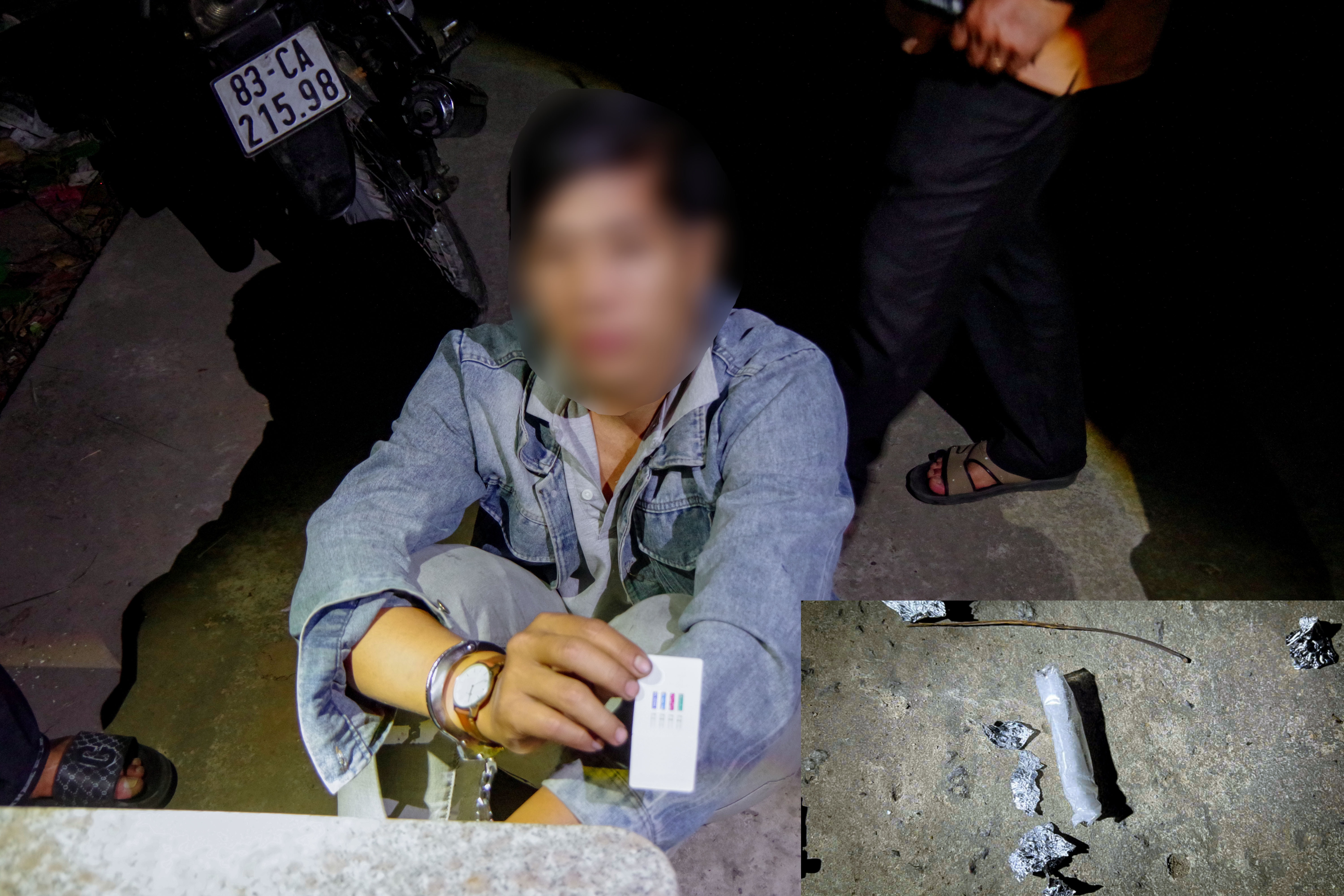 Tổ công tác phát hiện trên người P. có một túi nilon chứa tinh thể rắn màu trắng. Qua lời khai ban đầu, P. khai nhận đó là ma túy dạng đá, đối tượng mua về sử dụng.