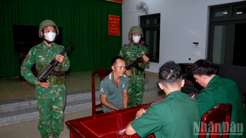 Tổ công tác đồn Biên phòng Vĩnh Châu lấy lời khai đối tượng Diệp Kết.