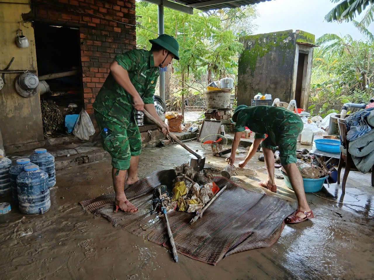 Chiến sĩ Đồn Biên phòng Xuân Hòa phối hợp cấp ủy, chính quyền địa phương khắc phục hậu quả thiên tai; làm sạch hệ thống thoát nước, tổng dọn vệ sinh tại các trường học, bảo đảm điều kiện để học sinh sớm trở lại học tập.