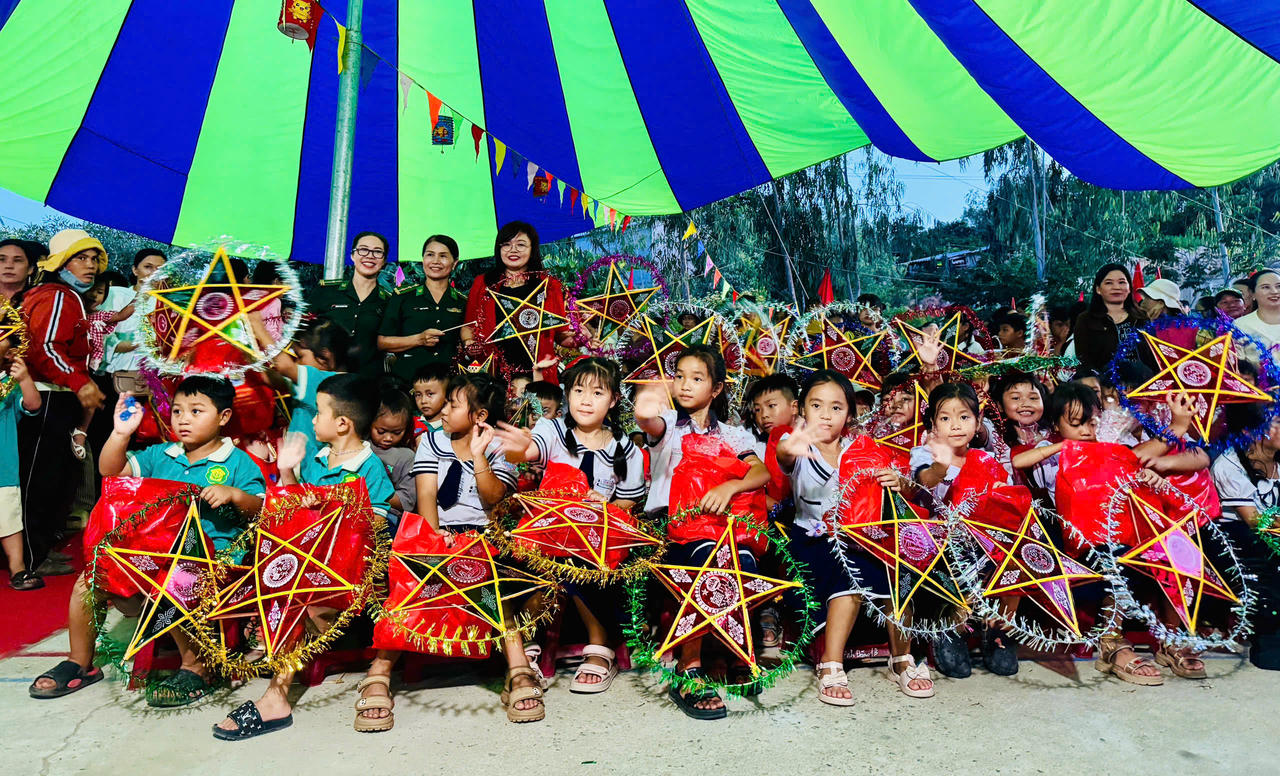 Trong ánh đèn lung linh sắc màu, tiếng trống lân rộn rã vang lên khắp sân trường làng biển. Các em nhỏ hân hoan khi lần đầu được rước đèn, giao lưu với chị Hằng – chú Cuội, tham gia các trò chơi dân gian, đố vui có thưởng, biểu diễn văn nghệ... Không khí vui tươi, hồn nhiên của trẻ thơ như thắp sáng cả vùng biên cương, mang đến một đêm hội trọn vẹn niềm vui và ký ức đẹp.