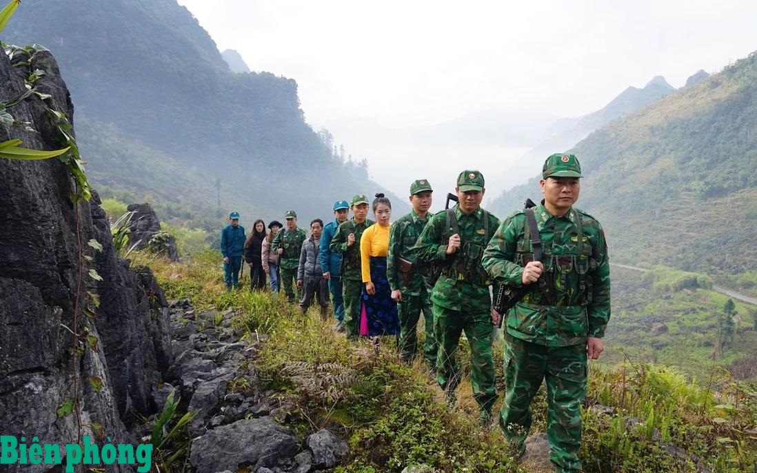 Cán bộ, chiến sĩ Đồn Biên phòng Phó Bảng, Bộ đội Biên phòng tỉnh Tuyên Quang cùng dân quân và nhân dân địa phương tuần tra bảo vệ biên giới. Ảnh: Xuân Minh