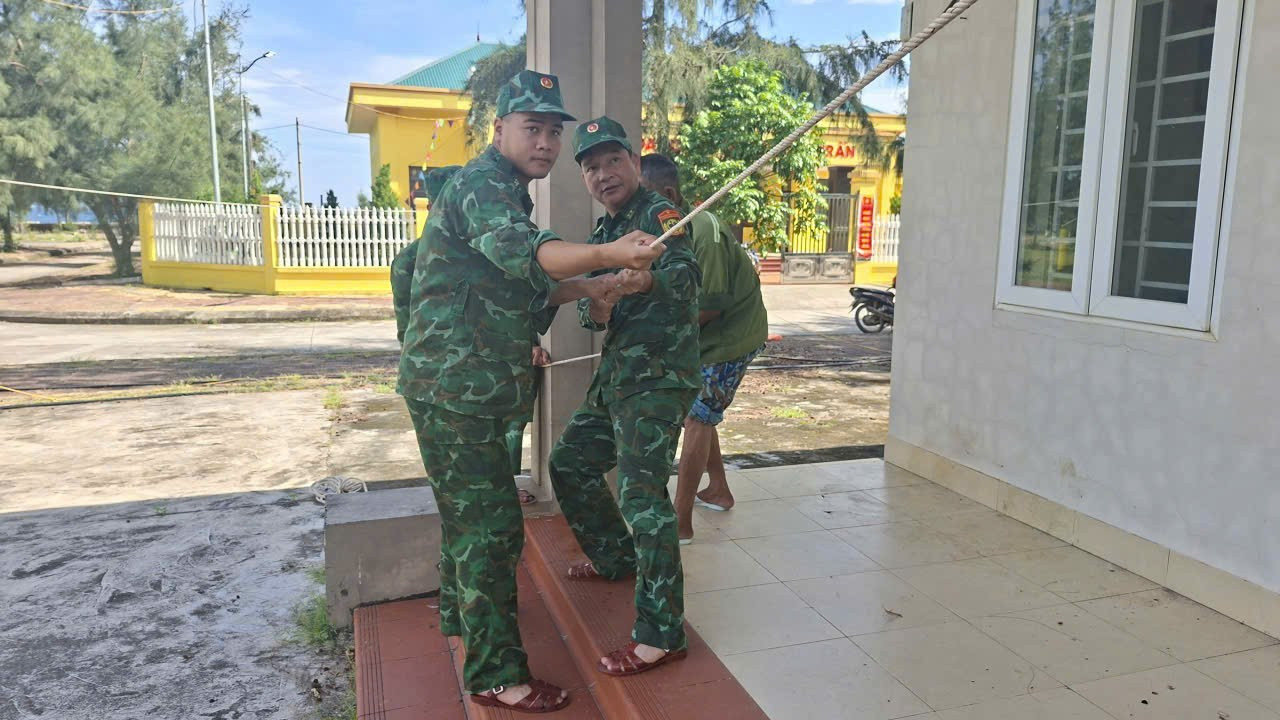 Hỗ trợ người dân chằng buộc lại các công trình, nhà cửa trước khi bão đổ bộ.