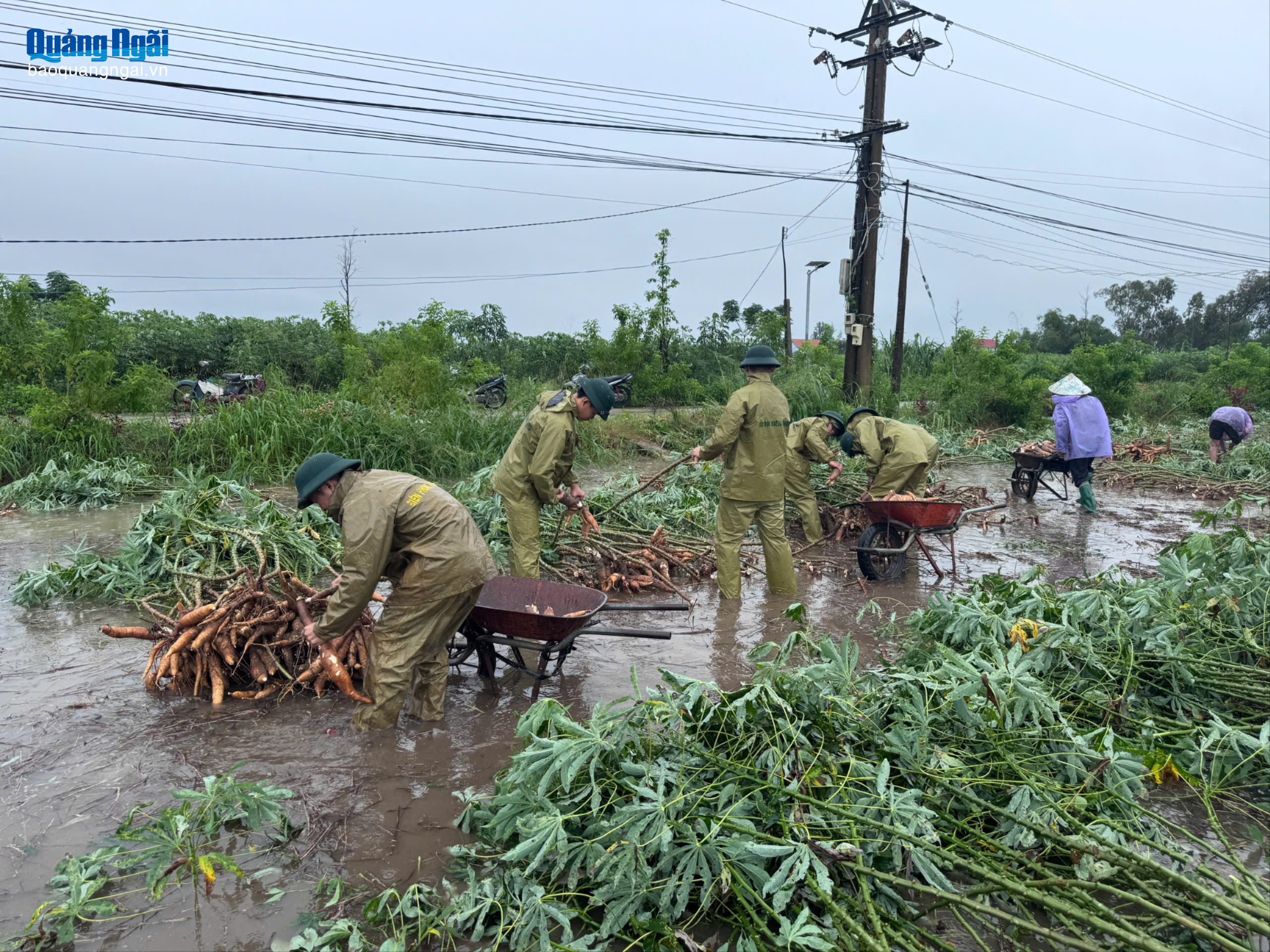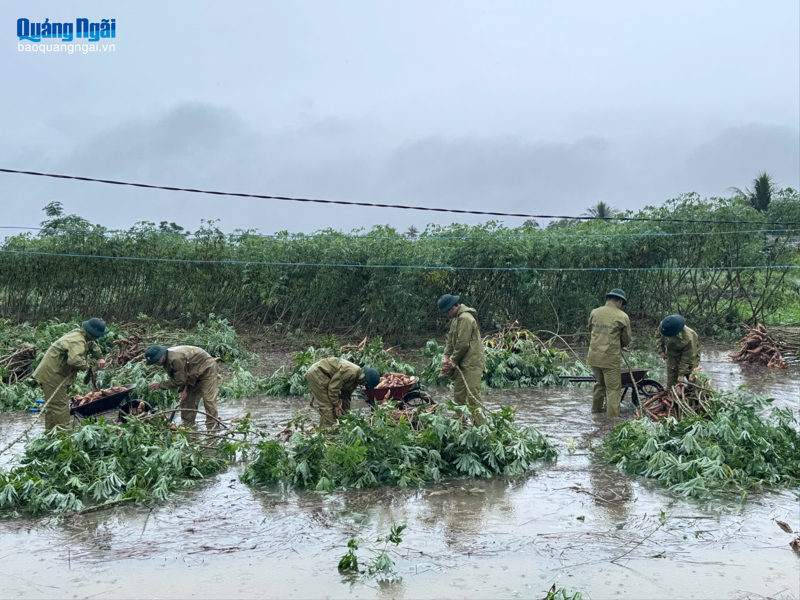 Theo đó, Đồn Biên phòng Đức Minh đã hỗ trợ người dân thôn Minh Tân Nam, xã Mỏ Cày, thu hoạch hơn 1,5ha củ mì tại các khu vực bị ngập nặng.