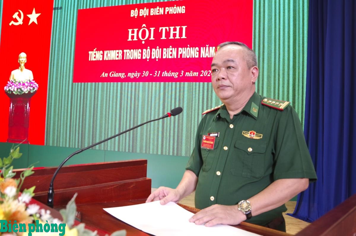 Phát biểu khai mạc hội thi, Đại tá Nguyễn Văn Khanh nhấn mạnh: “Hội thi lần này là dịp để các đồng chí được đào tạo, bồi dưỡng và sử dụng tiếng Khmer có điều kiện giao lưu, trao đổi, học hỏi kinh nghiệm lẫn nhau, góp phần thực hiện thắng lợi nhiệm vụ công tác biên phòng. Đồng thời, thông qua hội thi, các đồng chí vận dụng kiến thức tiếng Khmer để tuyên truyền đường lối, chủ trương của Đảng, chính sách, pháp luật của Nhà nước về quản lý, bảo vệ chủ quyền, an ninh biên giới quốc gia. Qua đó, góp phần củng cố tinh thần đoàn kết, hữu nghị giữa Bộ đội Biên phòng với các lực lượng và nhân dân các dân tộc ở khu vực biên giới”.