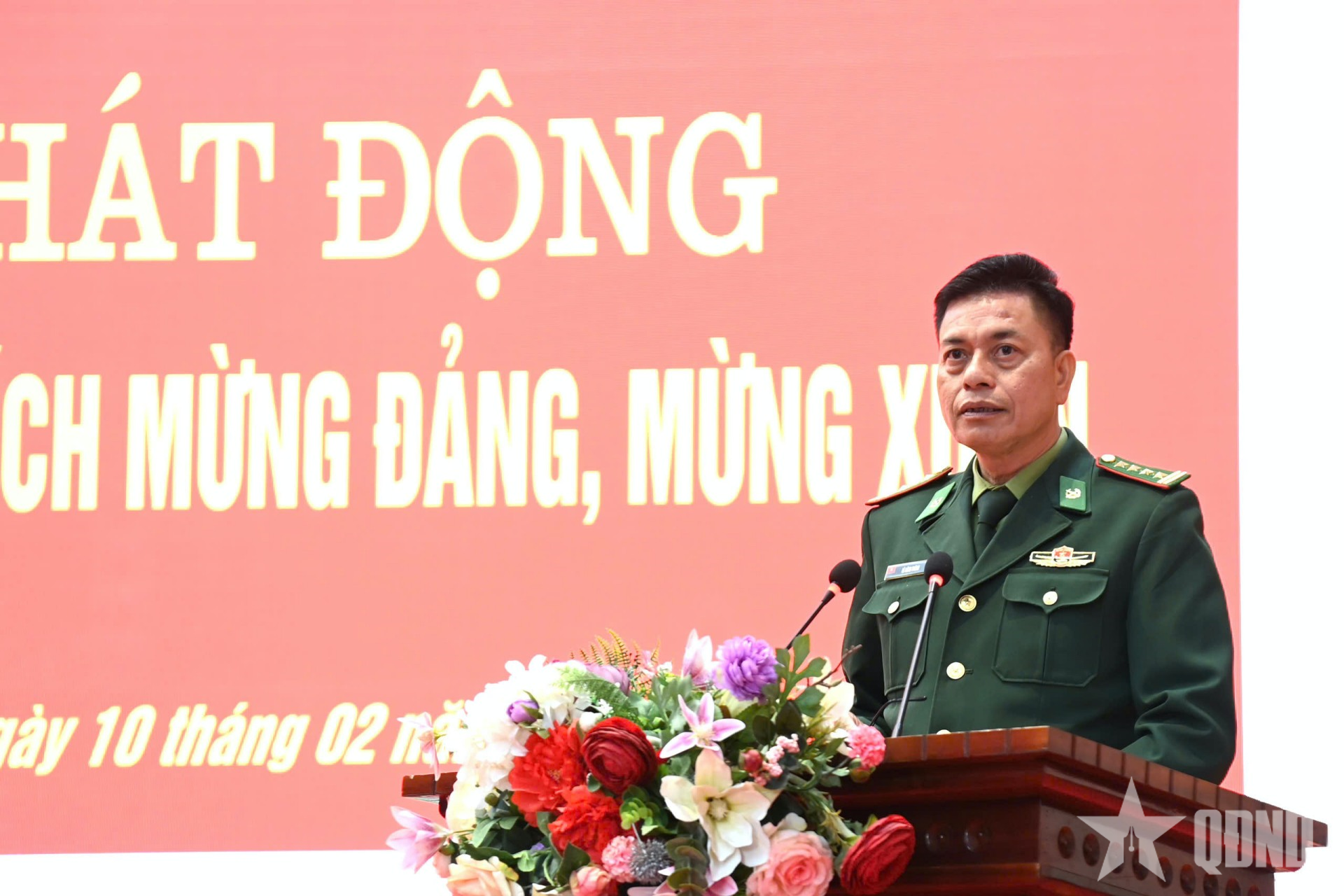 Đại tá Lê Công Thành, Phó chính ủy Ban chỉ huy BĐBP tỉnh Lai Châu phát biểu phát động thi đua.