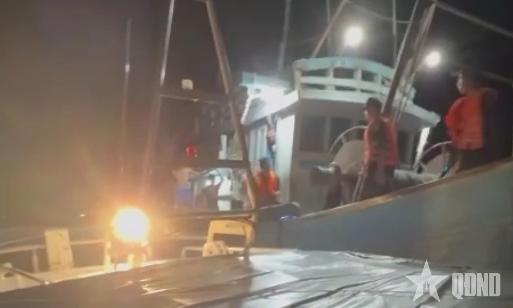 Tàu cá bị bắt quả tang đang thực hiện hành vi vi phạm vào tối 13-10.
