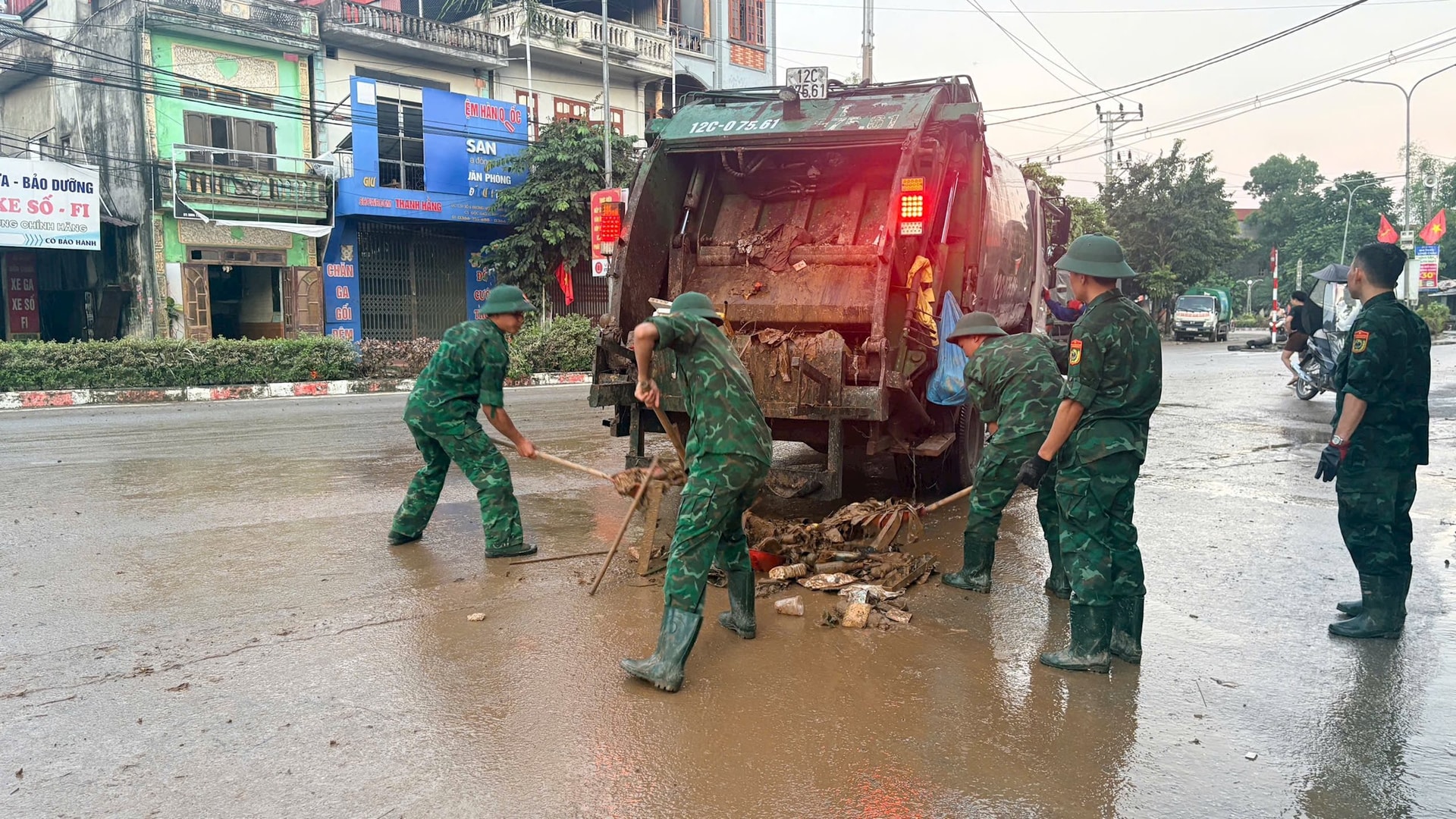 Hình ảnh các cán bộ, chiến sĩ tham gia khắc phục hậu quả mưa bão: