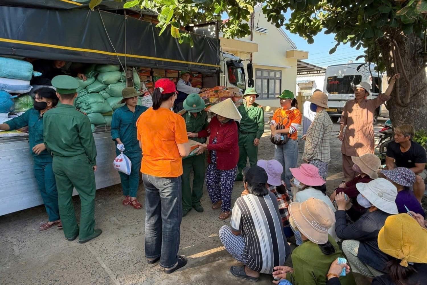 Chia sẻ nhu yếu phẩm cho bà con bị thiệt hại