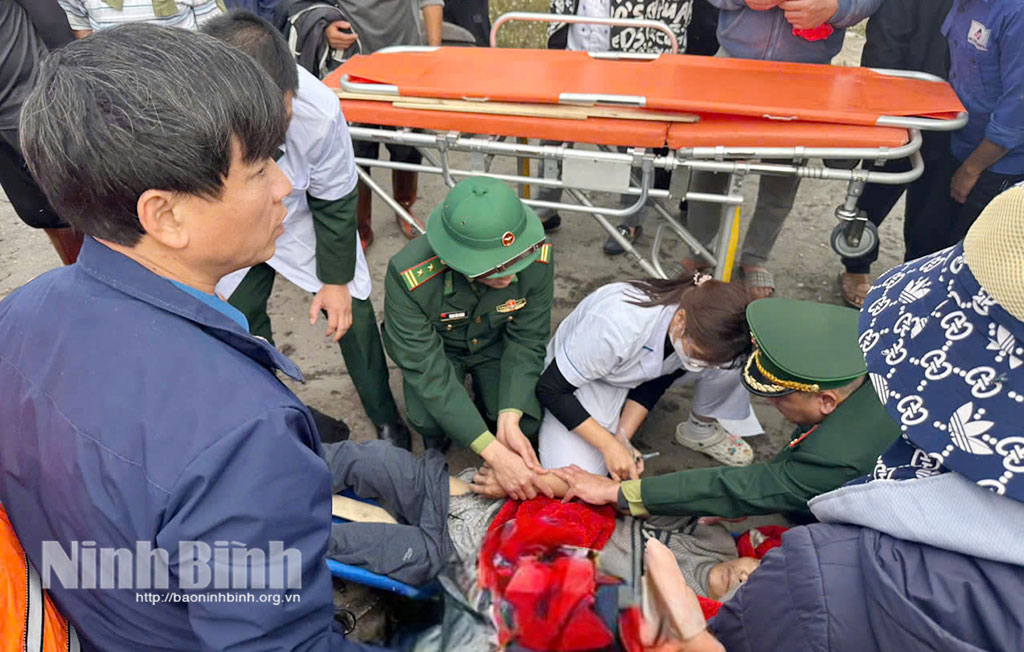 Cán bộ quân y Đồn Biên phòng Quất Lâm (Ban Chỉ huy BĐBP tỉnh Ninh Bình) sơ cứu cho nạn nhân.
