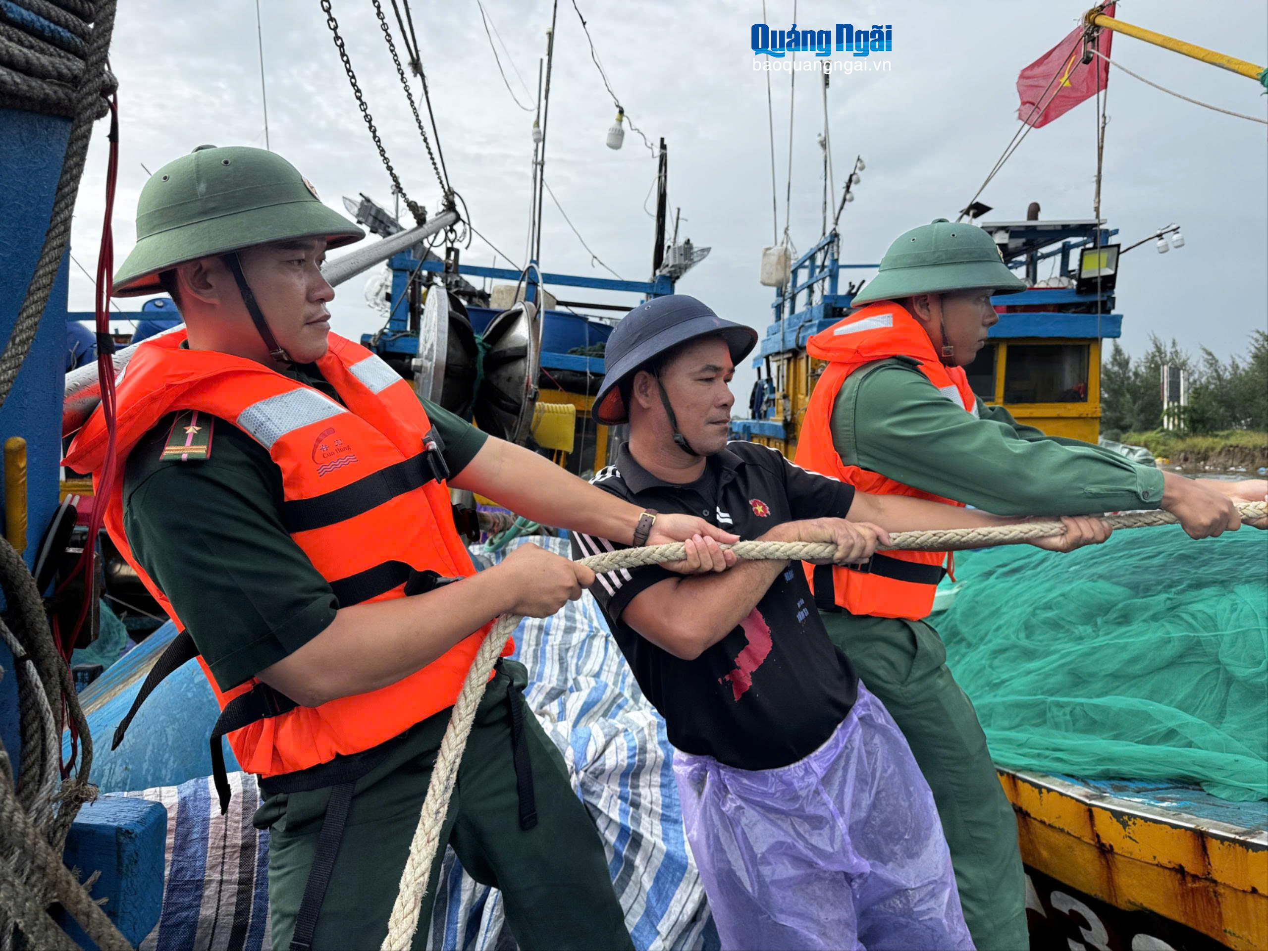 Đồn Biên phòng cửa khẩu cảng Sa Kỳ giúp ngư dân neo cột tàu thuyền.