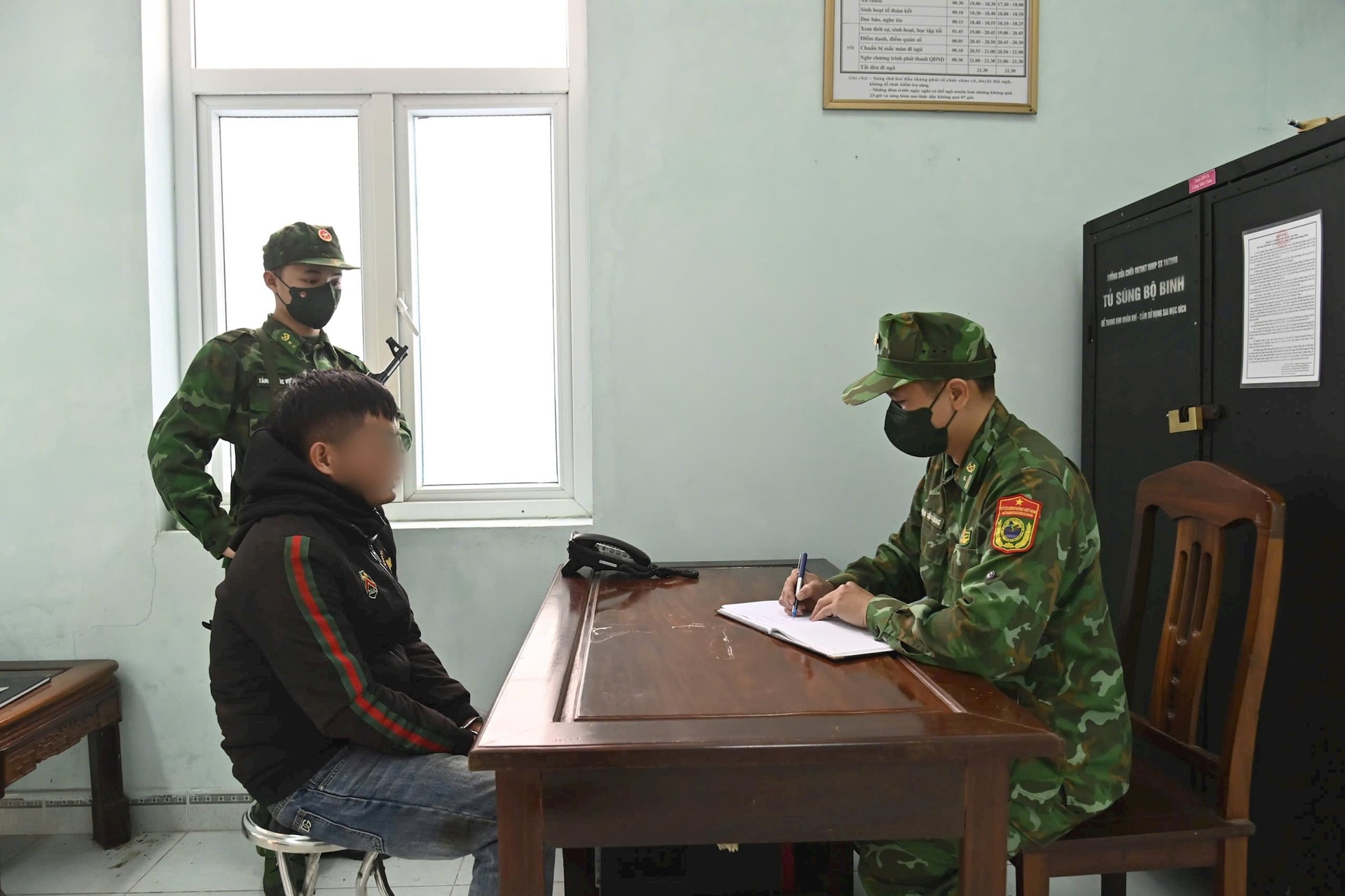 Bộ đội Biên phòng lấy lời khai của đối tượng.
