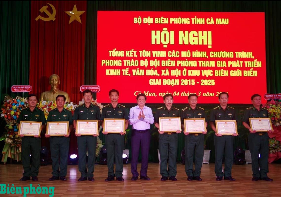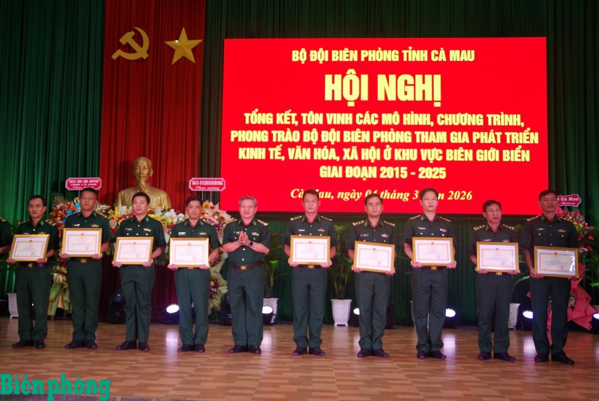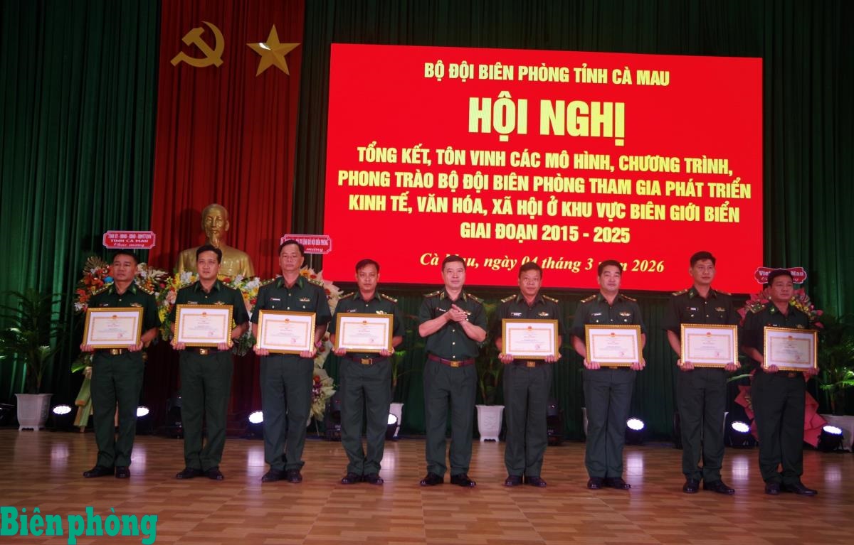 Dịp này, Bộ Tư lệnh Bộ đội Biên phòng và Ủy ban nhân dân tỉnh Cà Mau đã tặng bằng khen cho 14 tập thể và 38 cá nhân thuộc Bộ đội Biên phòng tỉnh Cà Mau có nhiều thành tích trong tham gia phát triển kinh tế, văn hóa, xã hội ở khu vực biên giới giai đoạn 2015-2025.
