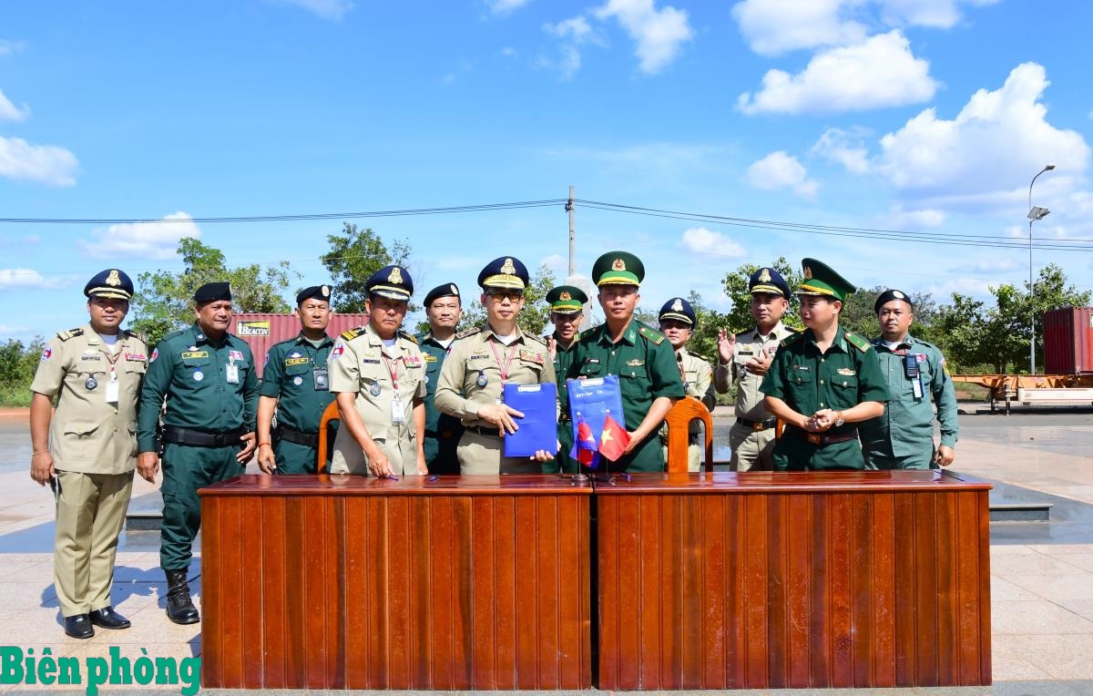 Lực lượng chức năng của Việt Nam và Campuchia hoàn tất các thủ tục bàn giao 63 công dân. Ảnh: Hữu Thịnh