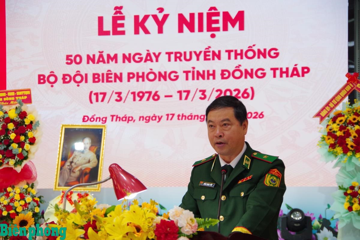 Phát biểu chỉ đạo tại buổi lễ, Thiếu tướng Trần Ngọc Hữu, Phó Tư lệnh Bộ đội Biên phòng biểu dương, chúc mừng thành tích và chiến công của các thế hệ cán bộ, chiến sĩ Bộ đội Biên phòng tỉnh Đồng Tháp đã phấn đấu đạt được trong suốt 50 năm qua. Thiếu tướng Trần Ngọc Hữu gửi lời cảm ơn chân thành đến Tỉnh ủy, Ủy ban Nhân dân tỉnh; Bộ Tư lệnh Quân khu 9; các sở, ban, ngành, lực lượng vũ trang, nhân dân tỉnh Đồng Tháp nói chung và cán bộ, nhân dân ở khu vực biên giới nói riêng đã thường xuyên quan tâm chỉ đạo, giúp đỡ, yêu thương đùm bọc các thế hệ cán bộ, chiến sĩ Bộ đội Biên phòng tỉnh Đồng Tháp suốt 50 năm qua.
