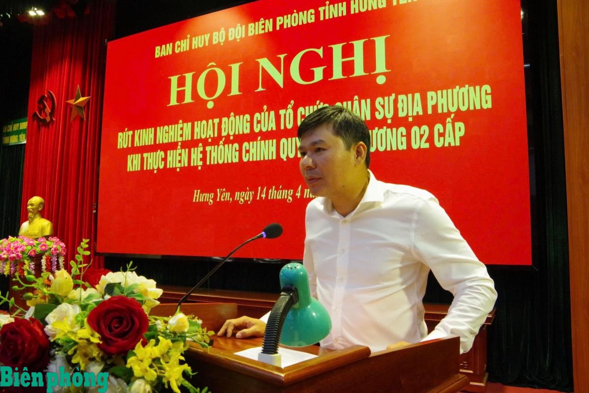 Đại tá Tống Thanh Sơn, Chỉ huy trưởng Ban Chỉ huy Bộ đội Biên phòng tỉnh Hưng Yên phát biểu tại hội nghị. Ảnh: Bùi Khoa