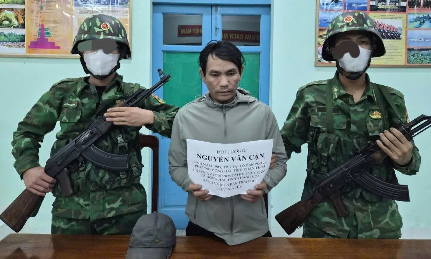 Theo đó, khoảng 12 giờ 45 phút ngày 17-1, Đồn Biên phòng Đông Hải chủ trì phối hợp với Phòng Nghiệp vụ - Ban Chỉ huy Bộ đội Biên phòng tỉnh và các lực lượng Công an tỉnh Khánh Hòa tổ chức tuần tra, mật phục, phát hiện Nguyễn Văn Cận (sinh năm 1985, trú phường Đông Hải) có biểu hiện nghi vấn liên quan đến ma túy tại khu vực ngã ba cảng cá Đông Hải (Tổ dân phố 16, phường Đông Hải). Tiến hành kiểm tra, lực lượng phối hợp phát hiện trên người Cận có 1 bịch ni lông bên trong chứa 7 đoạn ống hút nhựa hàn kín hai đầu chứa tinh thể rắn màu trắng; kiểm tra xe máy, phát hiện thêm 2 đoạn ống hút nhựa chứa tinh thể rắn màu trắng. Cận khai nhận toàn bộ số tang vật là ma túy dạng đá do Mai Văn Bảy (sinh năm 1993, trú Tổ dân phố 14, phường Đông Hải) đưa để đi giao cho một đối tượng chưa rõ lai lịch thì bị bắt giữ.