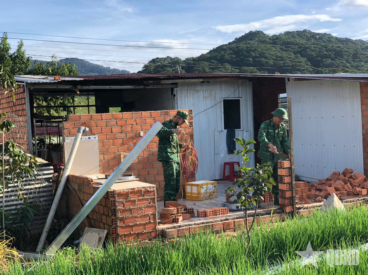Cán bộ, chiến sĩ Bộ đội Biên phòng tỉnh Lâm Đồng không quản ngày nghỉ, giờ nghỉ xây dựng nhà giúp người dân.