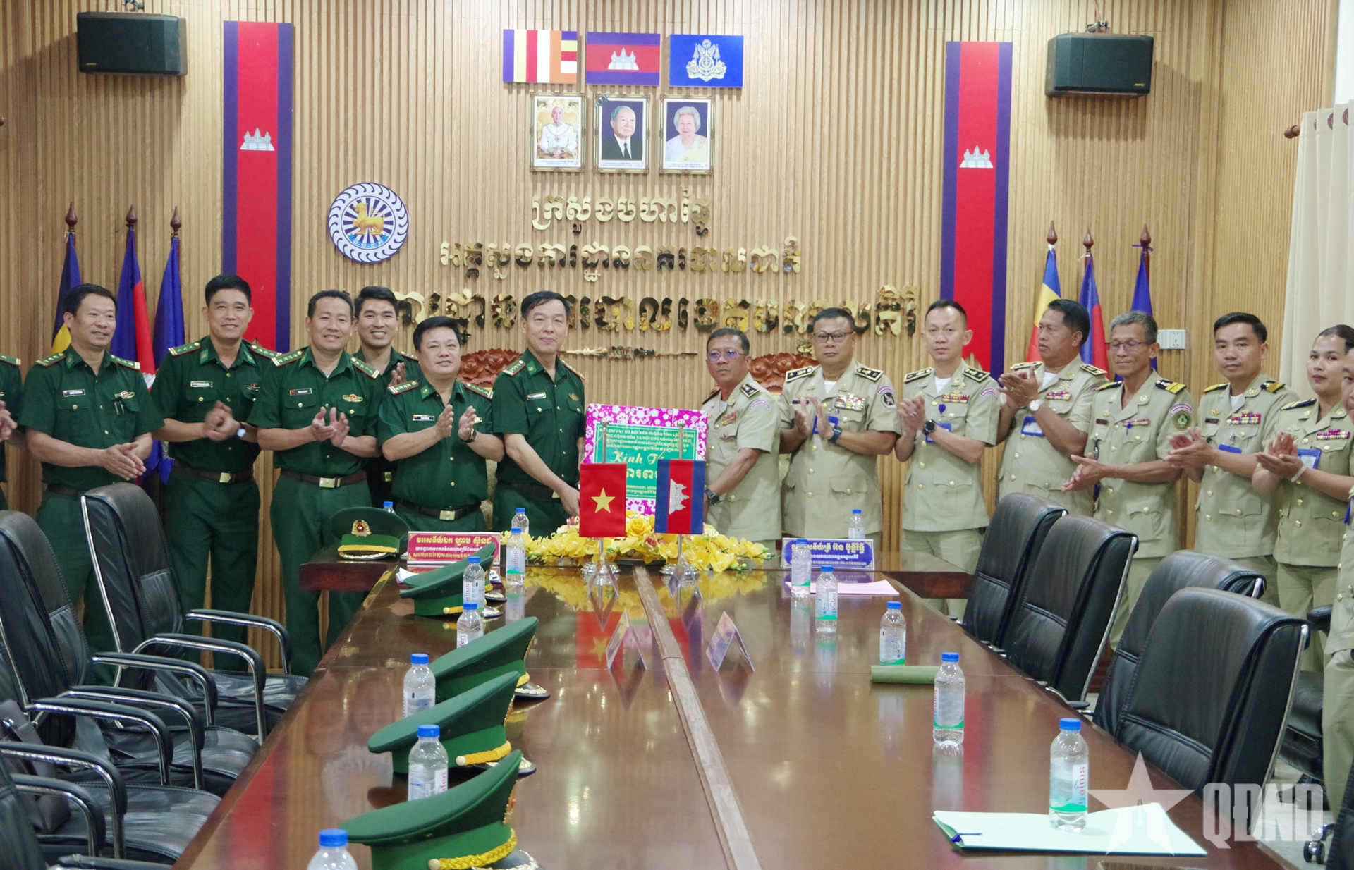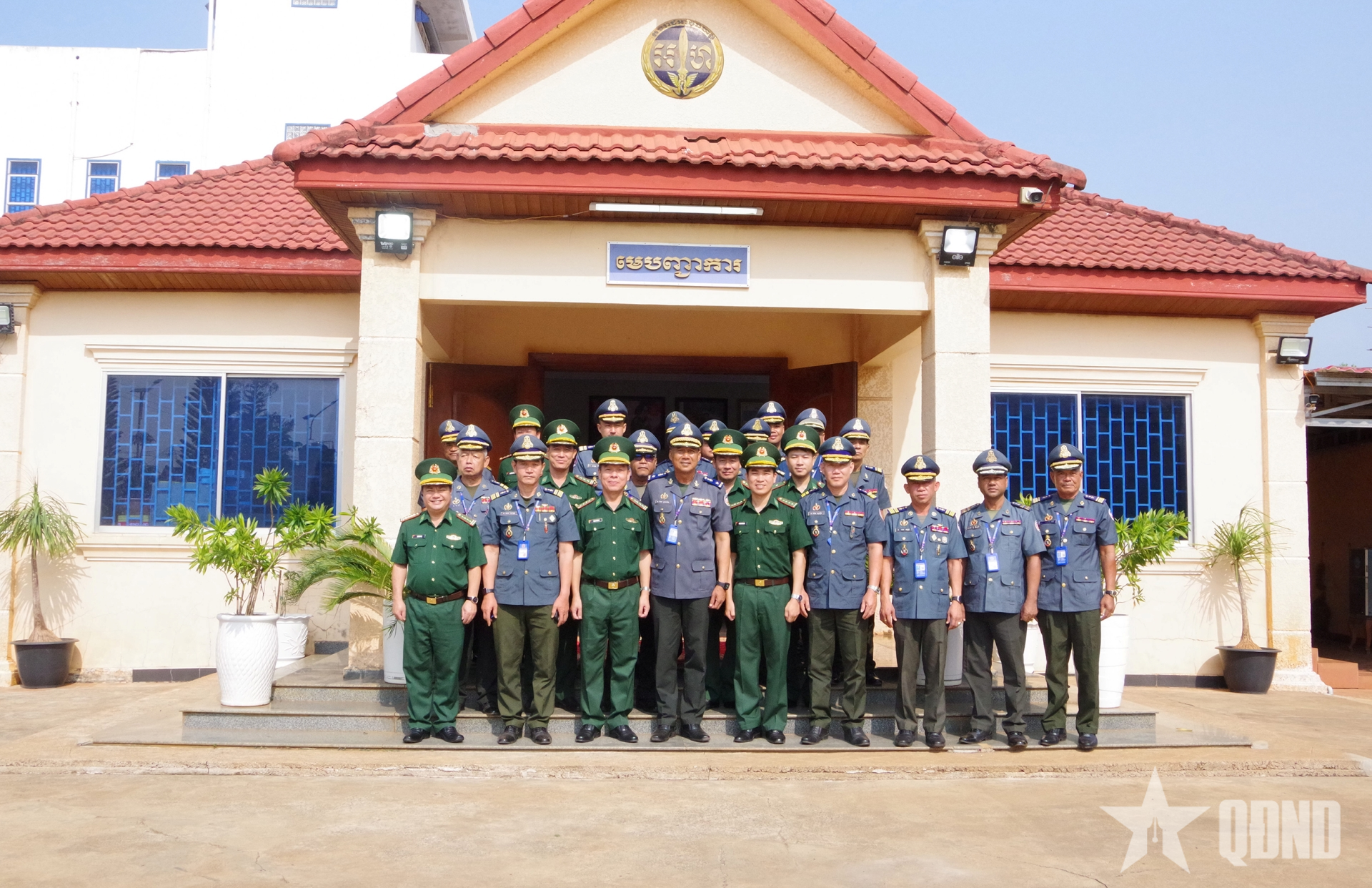 Đoàn công tác Ban chỉ huy Bộ đội Biên phòng tỉnh Lâm Đồng và Bộ chỉ huy Hiến binh tỉnh Mondulkiri chụp hình lưu niệm.