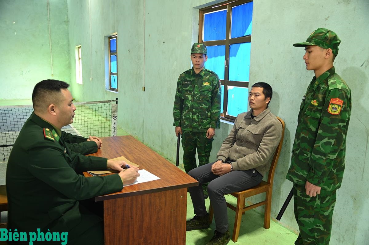 Cán bộ Đồn Biên phòng Pò Mã lấy lời khai của đối tượng. Ảnh: Đơn vị cung cấp