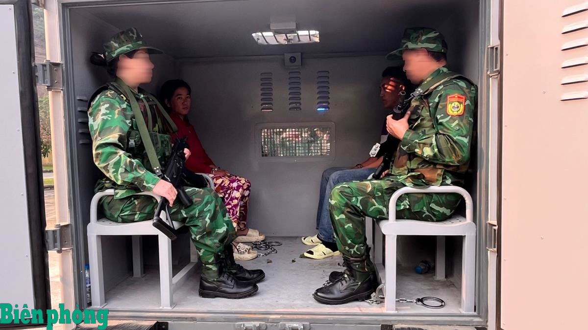Cán bộ, chiến sĩ Bộ đội Biên phòng tỉnh Lào Cai áp giải 2 đối tượng về Đồn Biên phòng Tả Gia Khâu để điều tra làm rõ. Ảnh: Trung Dũng