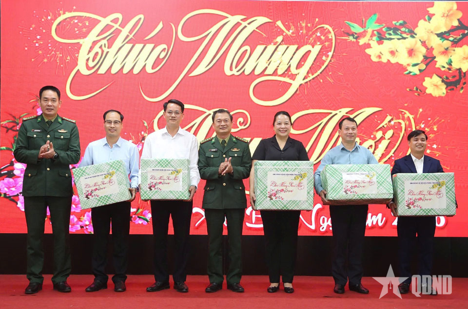 Ban Chỉ huy Bộ đội Biên phòng tỉnh Sơn La trao quà tặng đại diện các xã biên giới.