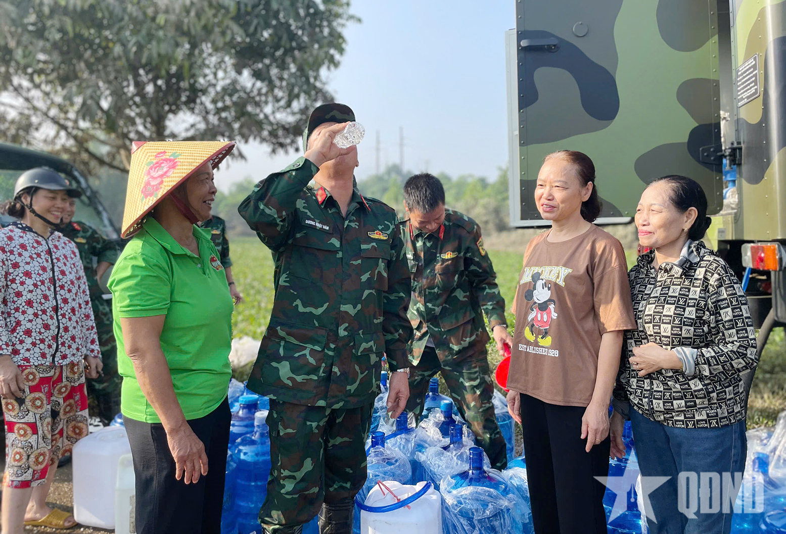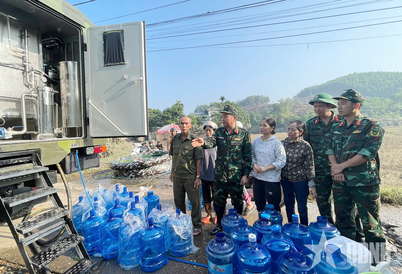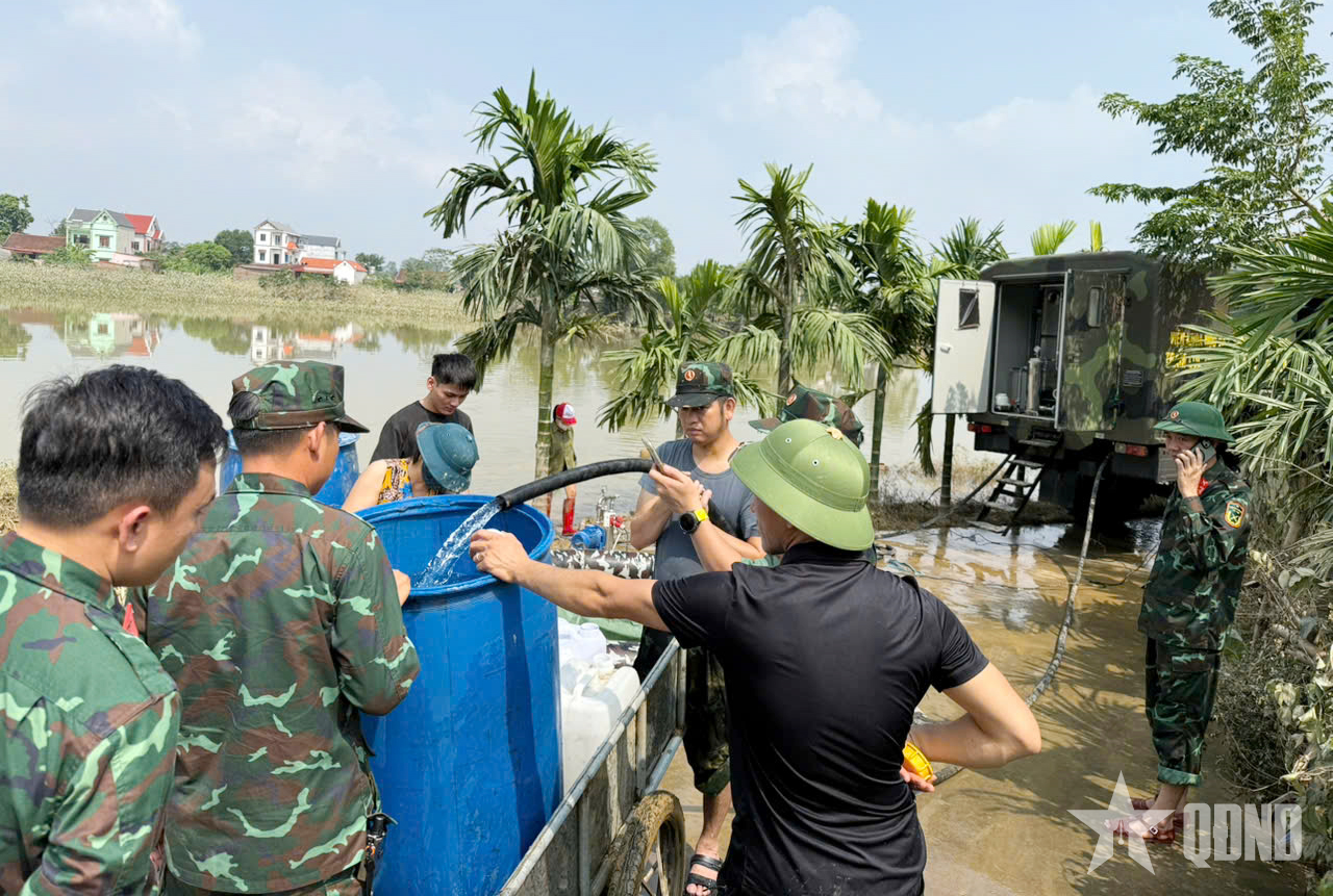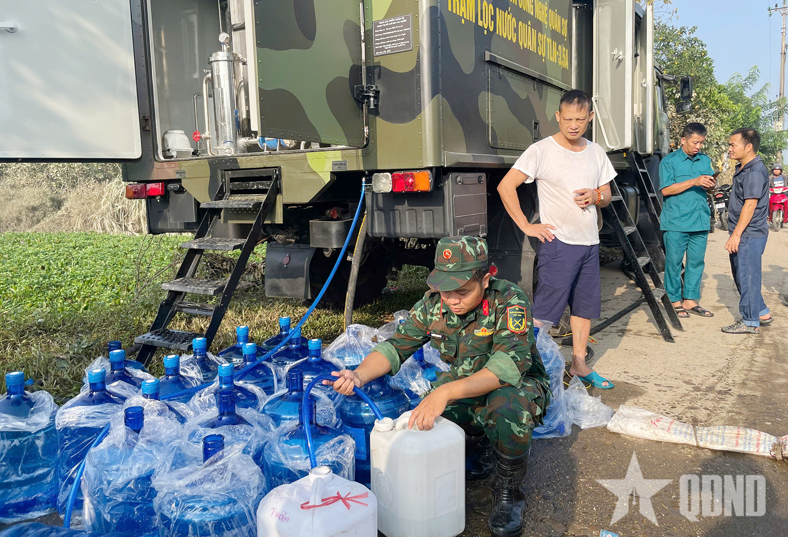 Đại tá Dương Nhật Dân cho biết, nước sạch là nhu cầu cơ bản của cuộc sống, đặc biệt là trong thời điểm lũ lụt. Thấu hiểu được nhu cầu của bà con, đoàn công tác nhanh chóng cơ động đến các địa điểm theo kế hoạch và phục vụ nhân dân với tinh thần “còn người dân đến thì bộ đội chưa nghỉ”. Vì thế mà các trạm lọc nước của đơn vị hoạt động hết công suất, cung cấp nước sạch sinh hoạt và nước tinh khiết cho nhân dân trên địa bàn đến khoảng 1 giờ sáng 12-10, sau đó tiếp tục cắt cử cán bộ duy trì hệ thống lọc tích nước để nhân dân có thể nhận nước từ sáng sớm.