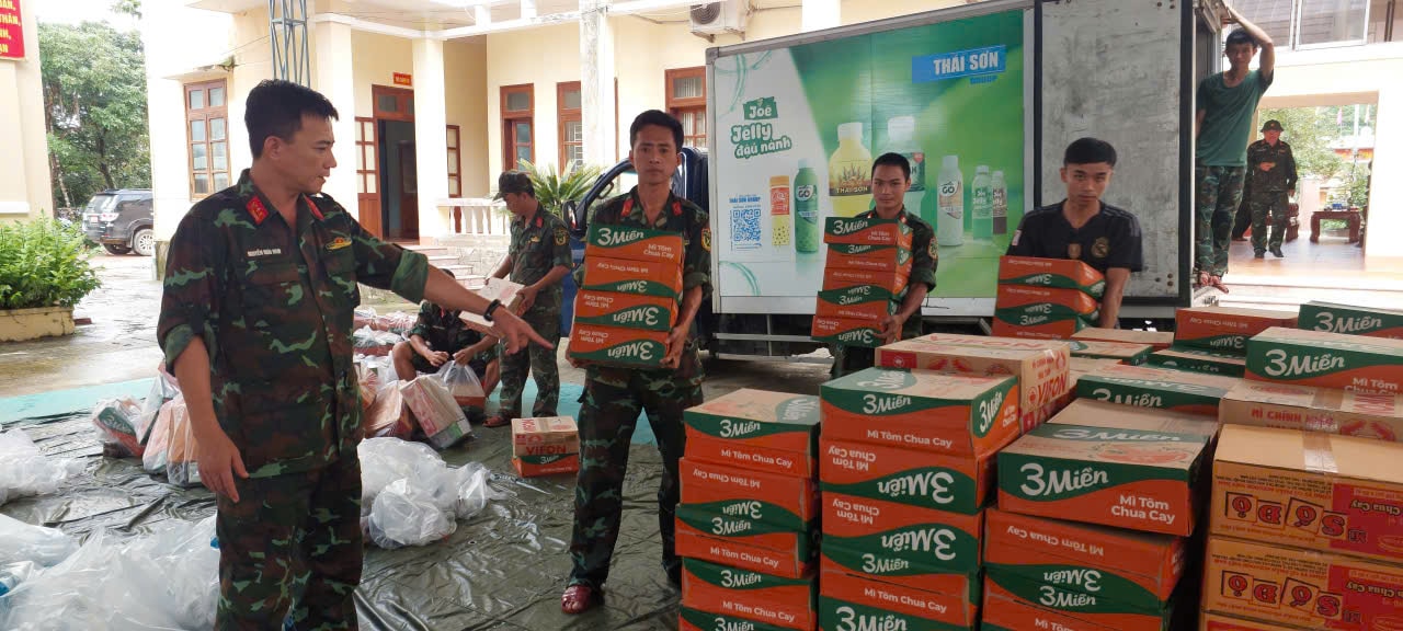 Theo đó, đơn vị vận chuyển 460 suất quà gồm: bánh chưng, bánh mì, nước uống, mì tôm, lương khô, quần áo, thuốc men tặng người dân; đồng thời, trao quà của Quân khu 5, 500 kg lương khô, 4 tấn gạo của Bộ Chỉ huy quân sự thành phố tặng.