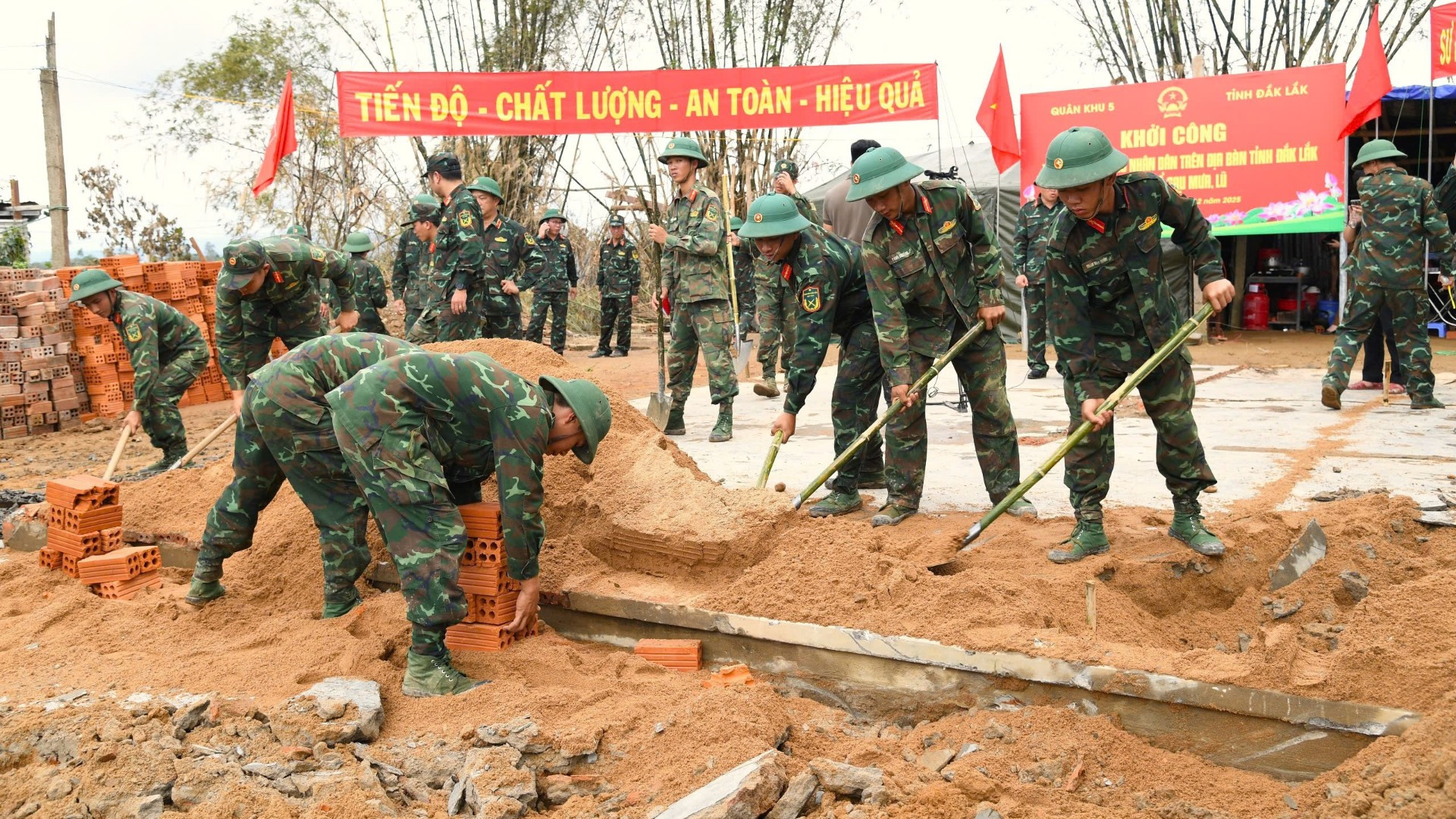 Để triển khai nhiệm vụ, Quân khu 5 tổ chức 155 đội xây dựng, mỗi đội từ 15-17 cán bộ, chiến sĩ, trong đó có 3-4 thợ xây tay nghề cao, riêng tại tỉnh Đắk Lắk là 100 đội.