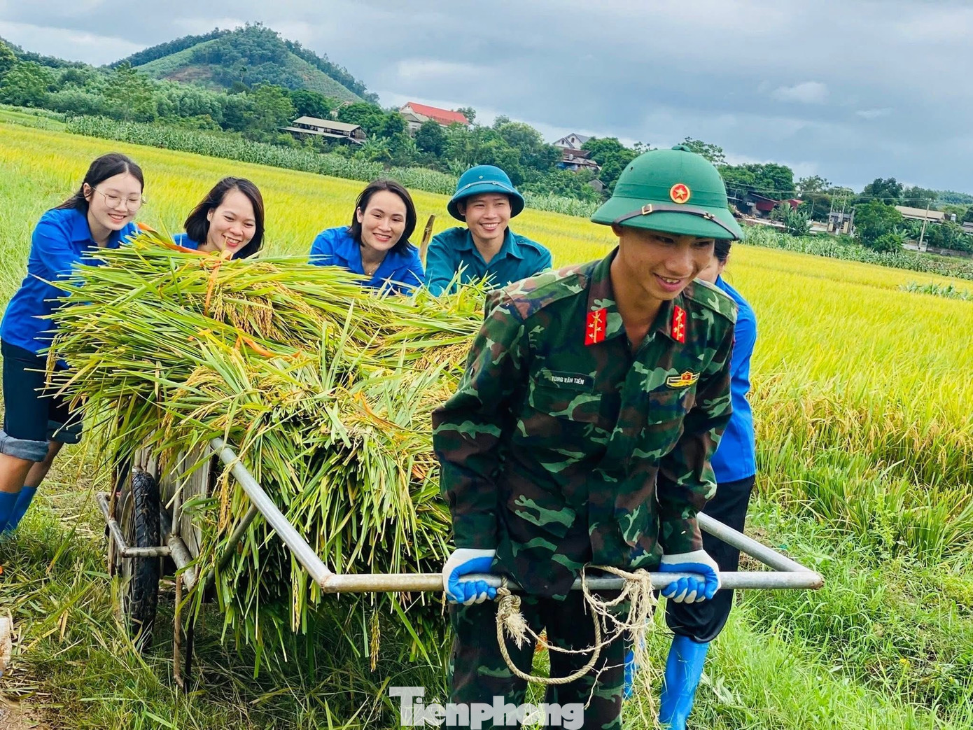 Trong những ngày qua, hàng trăm thanh niên tỉnh Phú Thọ tình nguyện xuống đồng, cùng bộ đội, dân quân tự vệ hỗ trợ người dân thu hoạch lúa mùa.