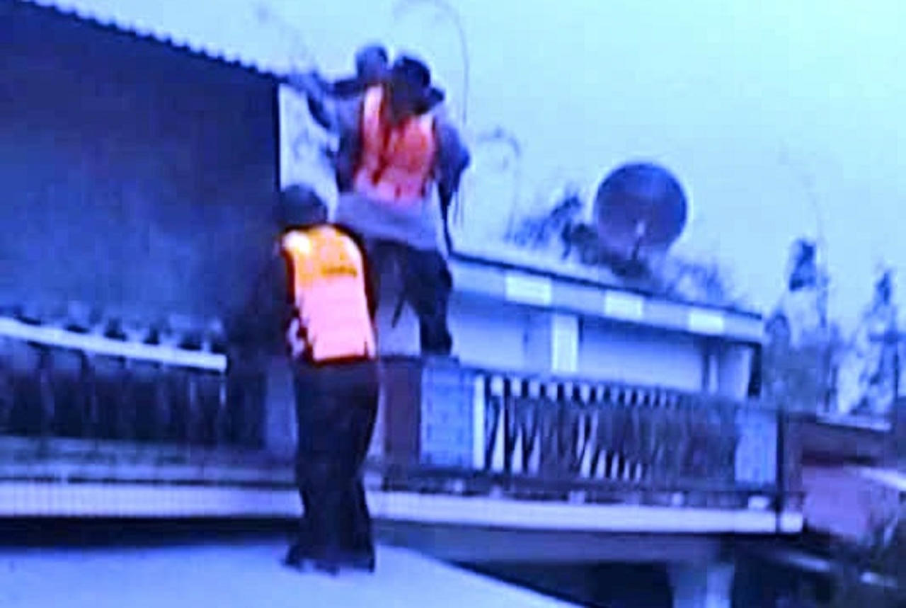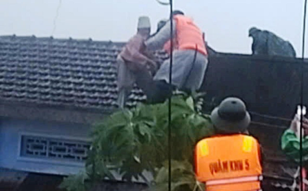 Ứng cứu người dân chênh vênh giữa dòng nước lũ.