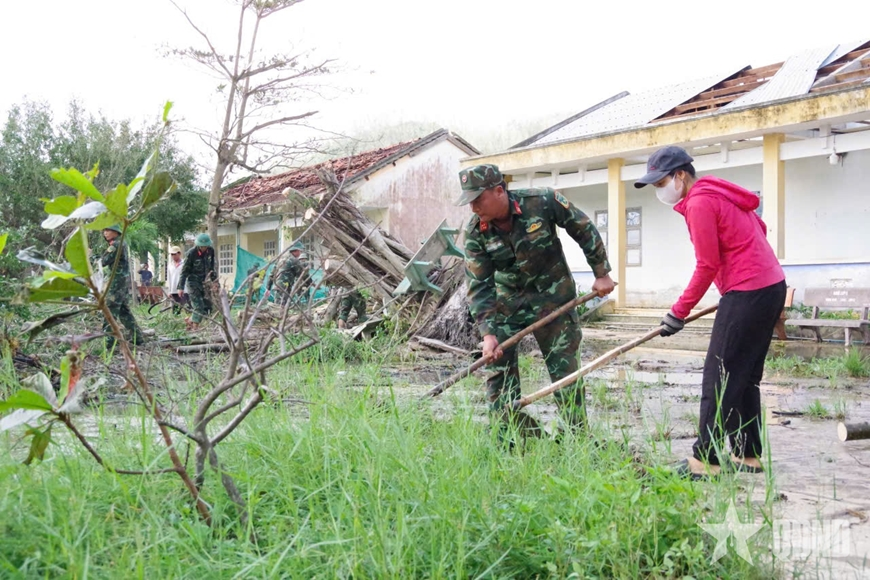 Cùng với lực lượng địa phương, ngày 9-11, hơn 300 cán bộ, chiến sĩ Sư đoàn Bộ binh 2 (Quân khu 5) đã đến các trường học thuộc các địa phương bị thiệt hại nghiêm trọng như xã Đồng Xuân, phường Sông Cầu để hỗ trợ. Khối lượng công việc khổng lồ, nhưng với kinh nghiệm và kỷ luật Quân đội, các chiến sĩ đã chia thành nhiều tổ, nhóm nhỏ, thực hiện đồng thời nhiều nhiệm vụ: Từ nạo vét bùn đất, khử khuẩn, củng cố tường rào đến lợp lại mái tôn, sửa chữa bàn ghế. Tinh thần “vì nhân dân phục vụ” được thể hiện rõ nét qua từng hành động dứt khoát, khẩn trương, không ngại khó, không ngại khổ. Hành động của Bộ đội Cụ Hồ đã thể hiện rõ sự đồng lòng, quyết tâm của tỉnh Đắk Lắk trong việc nhanh chóng đưa mọi hoạt động trở lại bình thường. Song song với việc dọn dẹp, công tác kiểm tra an toàn được đặt lên hàng đầu.