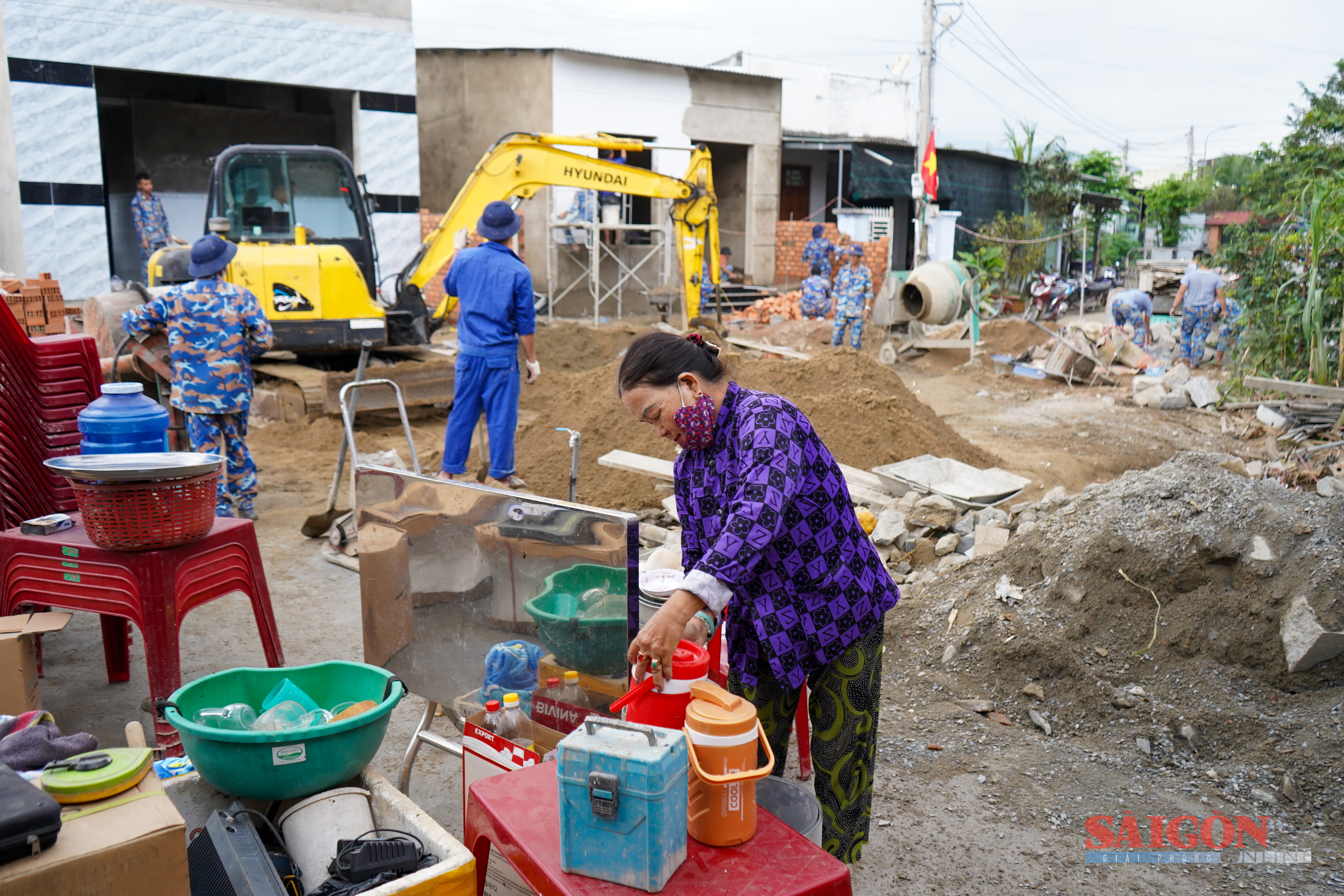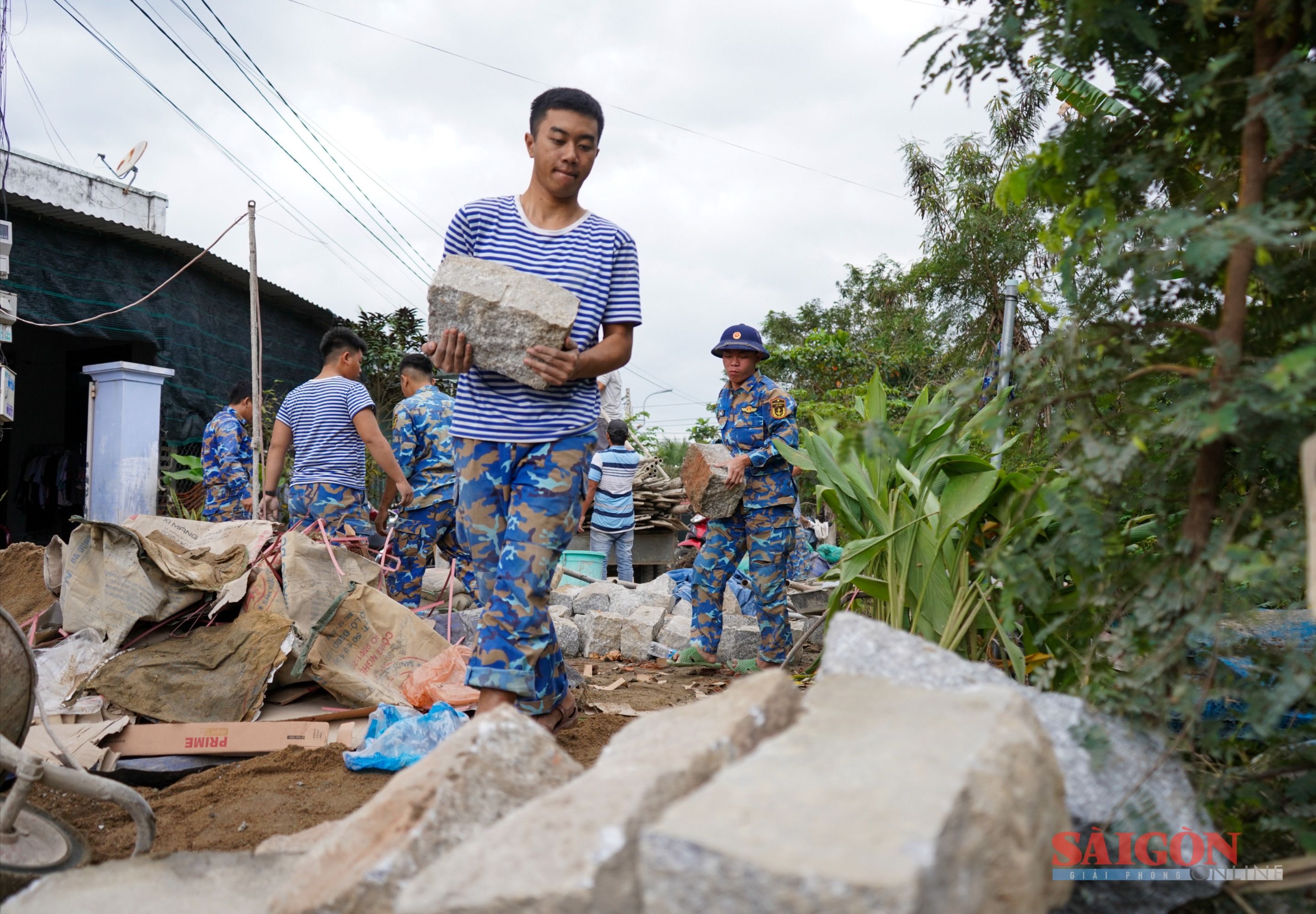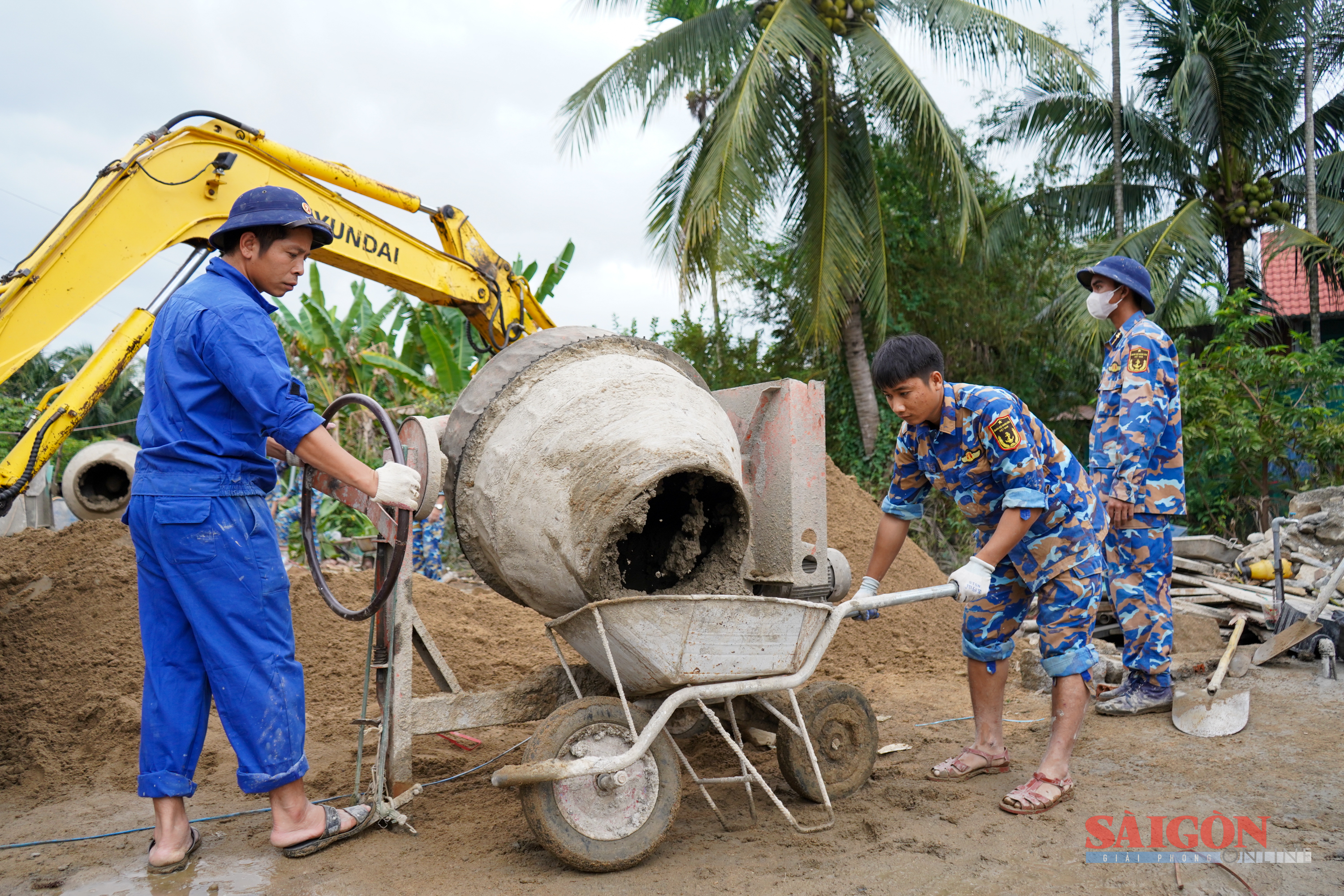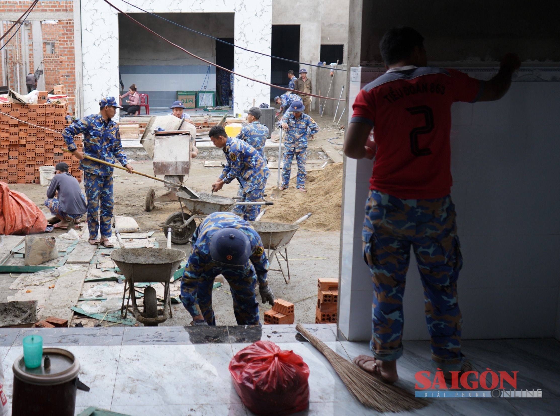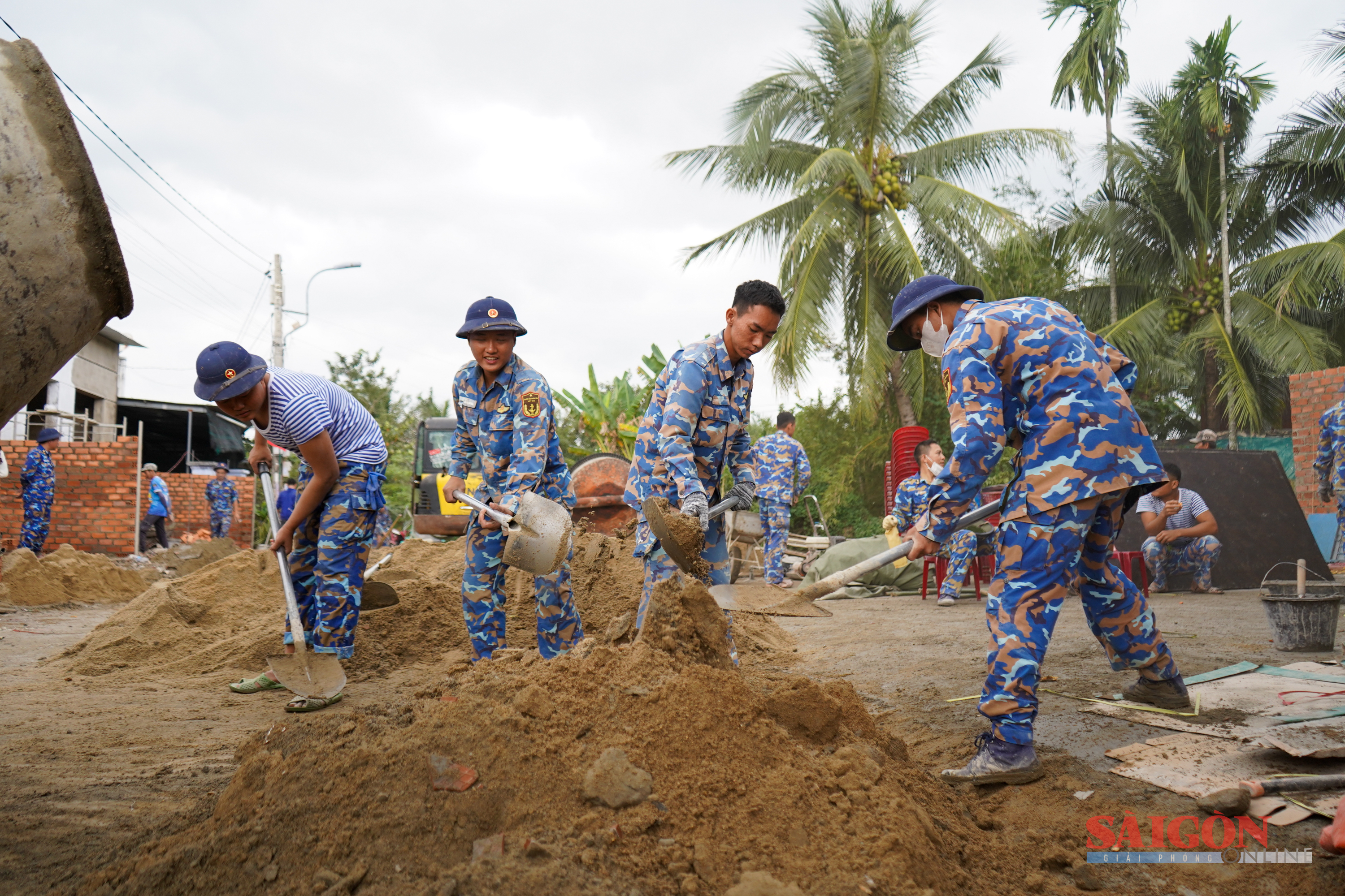 Lực lượng Vùng 4 Hải quân đều tham gia tất cả các công đoạn từ đào móng, thi công đến vận chuyển vật liệu, trộn xi măng, đan sắt xây dựng...