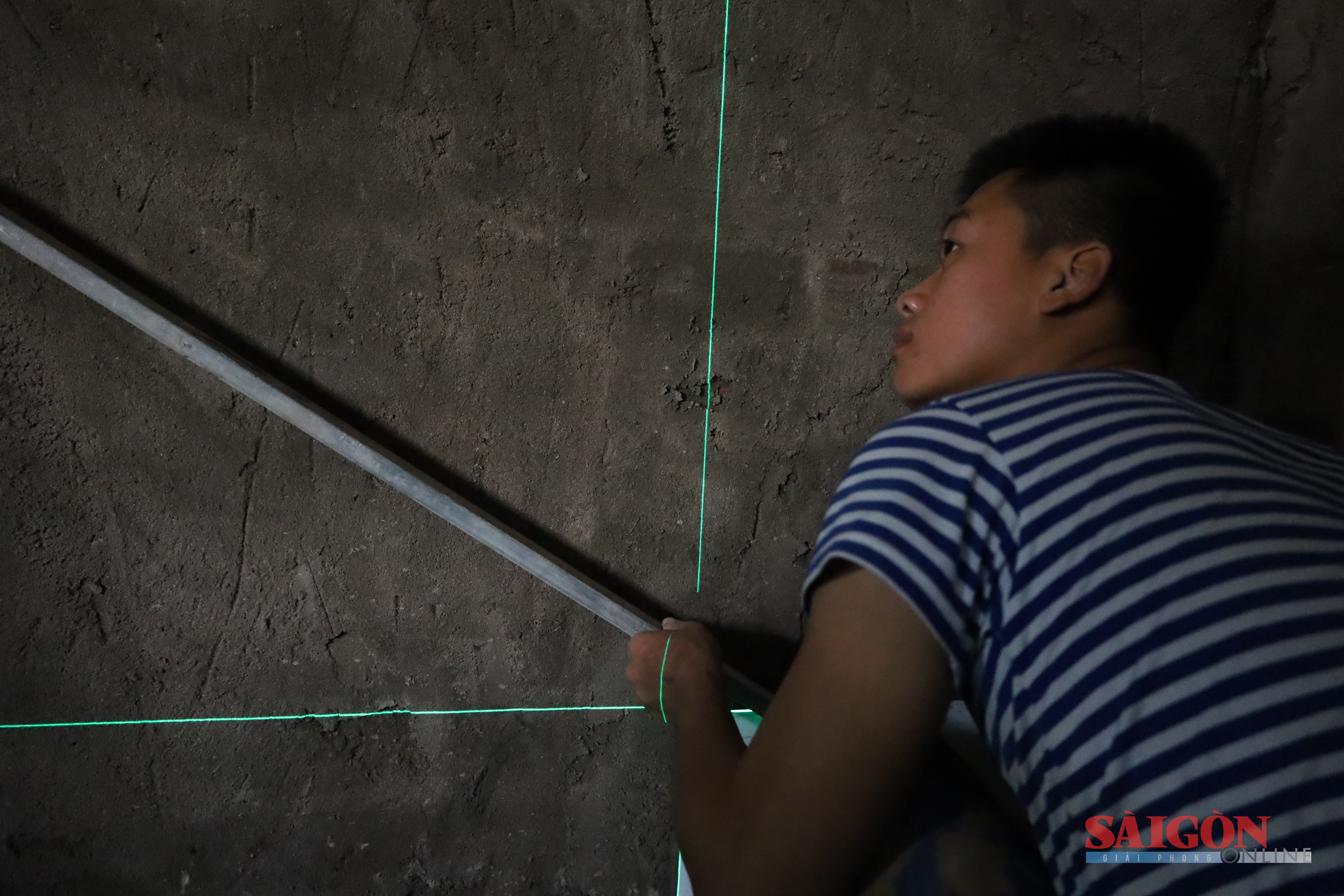 Trong quá trình thi công, bộ đội sử dụng máy cân bằng laser nhằm bảo đảm các hạng mục xây dựng nhà ở cho người dân vùng lũ đạt độ chính xác, gọn gàng và bảo đảm yêu cầu thẩm mỹ.