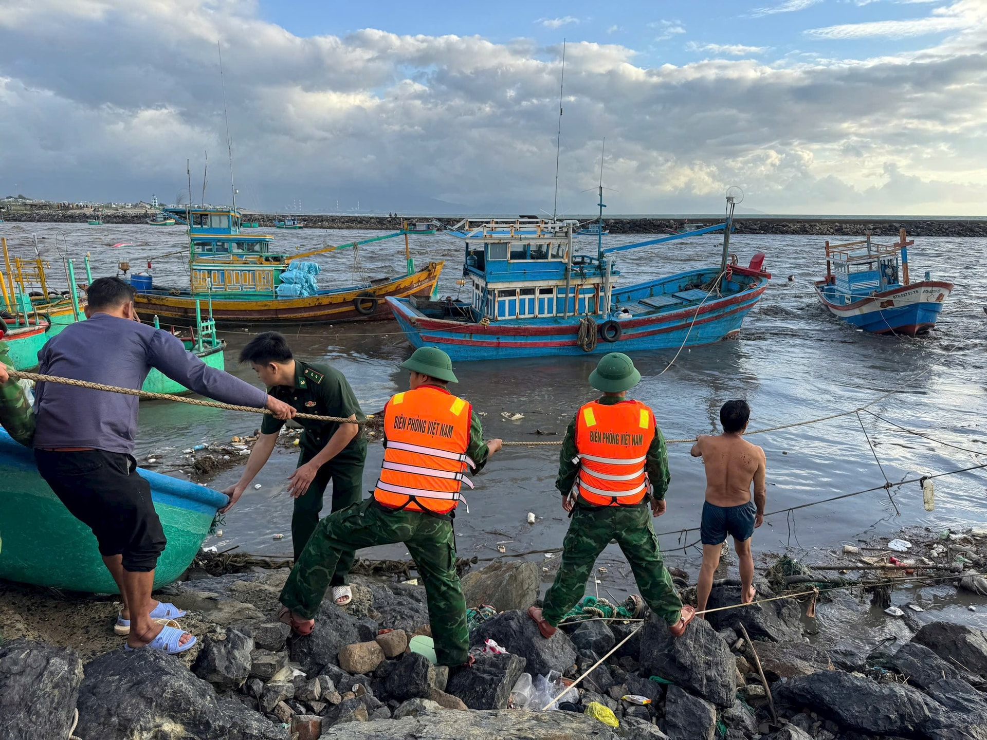 Lực lượng Biên phòng giúp dân chằng buộc lại tàu thuyền